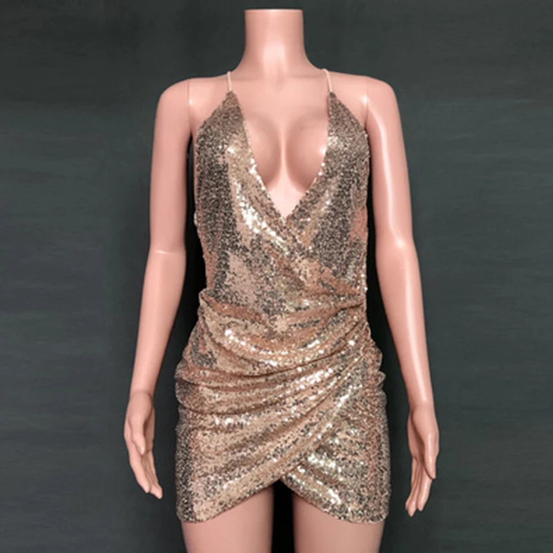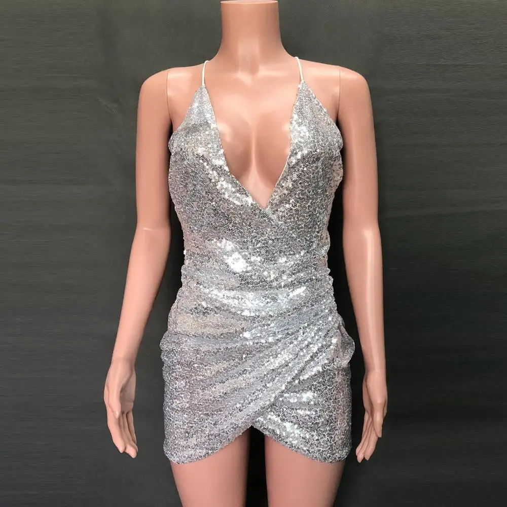 Серебристое сексуальное платье с открытой спиной, с глубоким V-образным вырезом, Осеннее женское мини-платье с открытыми плечами, вечерние Клубные платья на бретелях, 2020