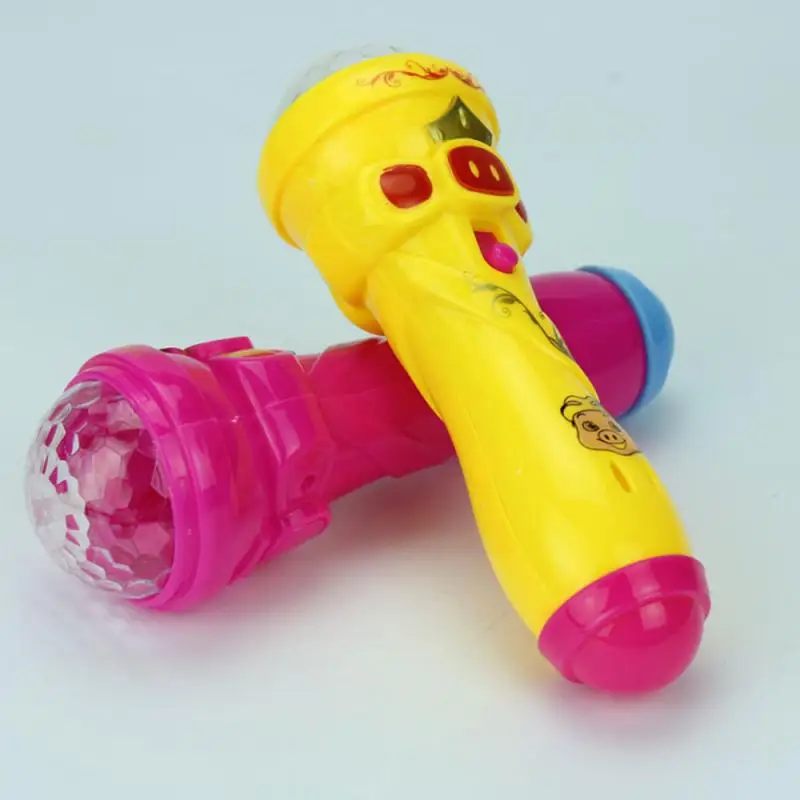 Детский проекционный микрофон, мигающий микрофон со светодиодной подсветкой, проекционный микрофон в Форме Факела, детская игрушка в подарок