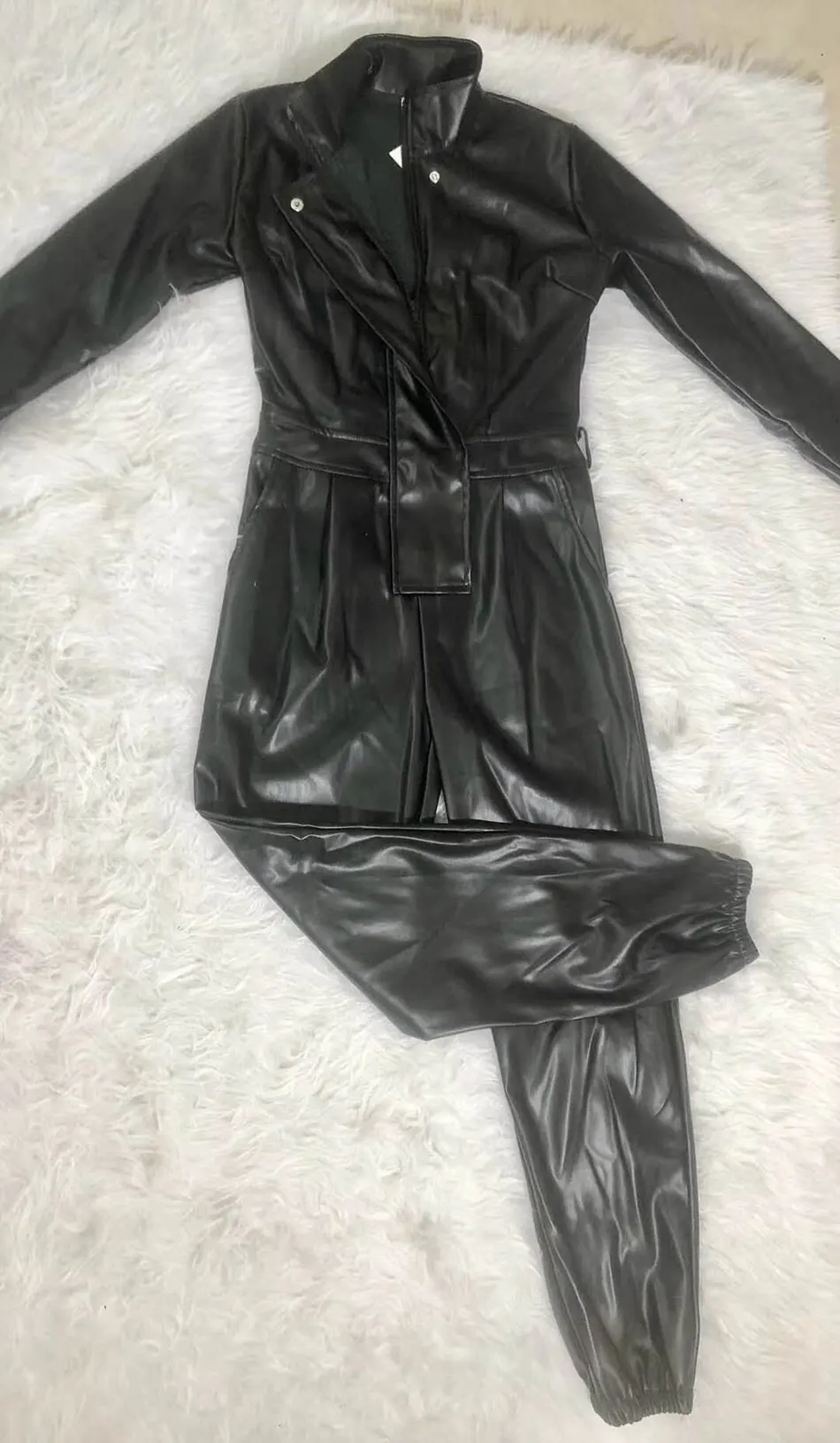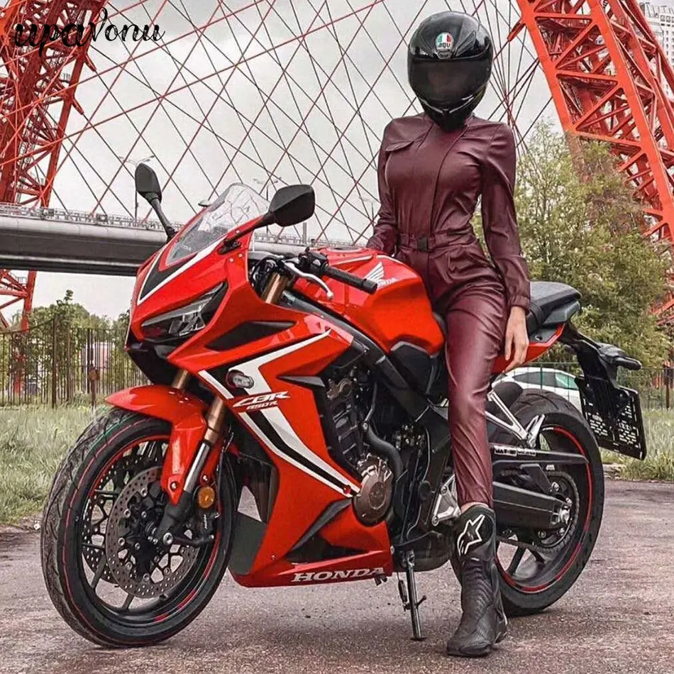 Комбинезон женский из искусственной кожи, на молнии, с воротником-стойкой и длинным рукавом, мотоциклетный комбинезон из искусственной кожи, 2021