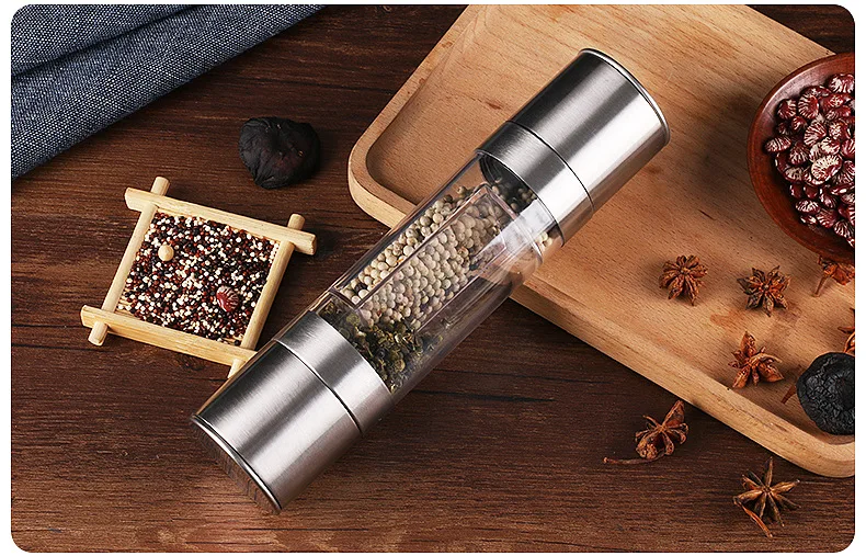 Двухсторонний измельчитель соли, перца, травяной измельчитель из нержавеющей стали мельница для перца ручная, шейкер, толстый керамический ротор