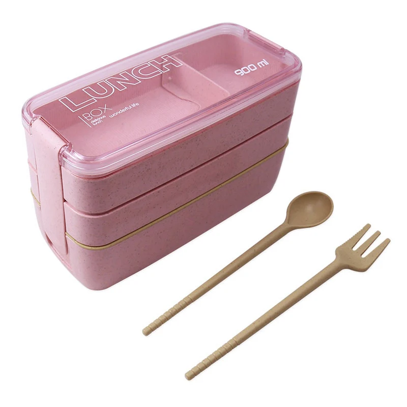 Новый узор, 3 слоя, 900 мл, бэнто-бокс, экологически чистый Ланч-бокс, пищевой контейнер, материал пшеничной соломы, для микроволновки, обеденная коробка