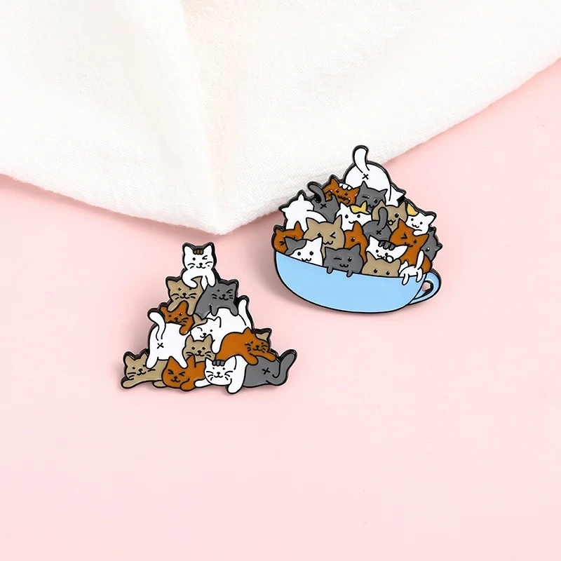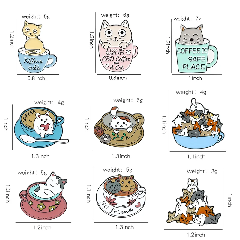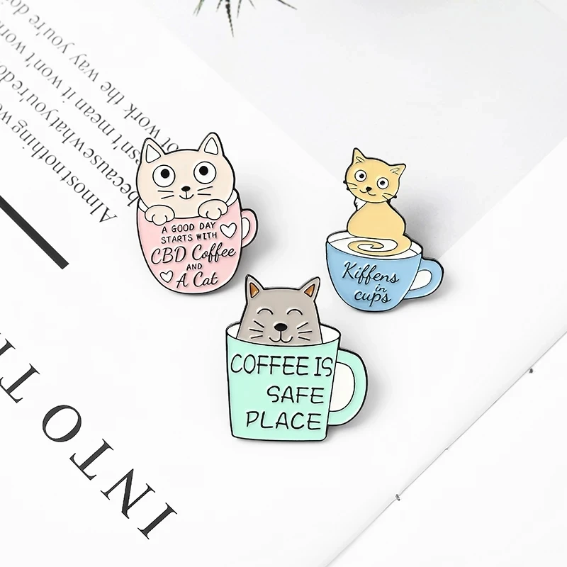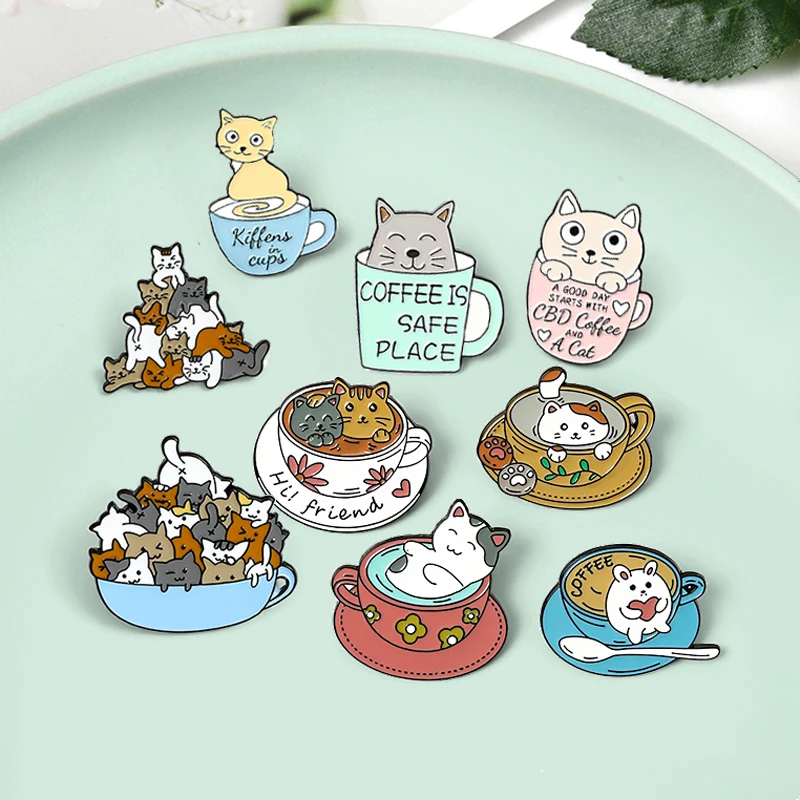 Эмалированные заколки для лацканов с милыми кошками кофе безопасное место Привет! Друг чашка кошки значки модные заколки подарки для друзей оптовая продажа