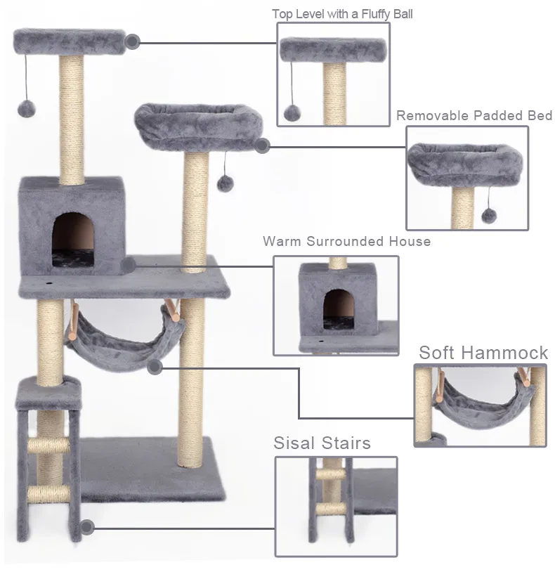 Большая кошачья Когтеточка Hoopet H134cm, многоуровневая кошачья Когтеточка, мебель