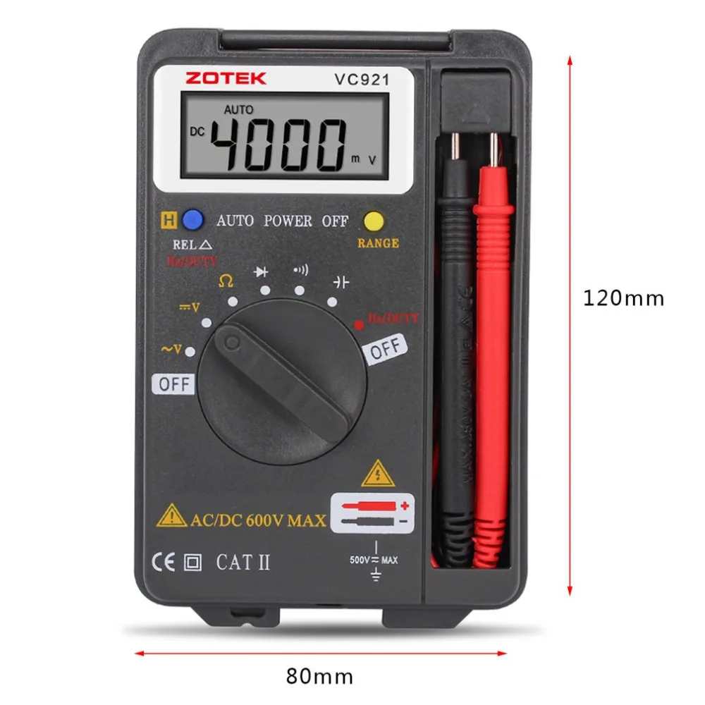Мультиметр VC921 Карманный тестер портативный цифровой автоопределение 4000 отсчетов Вольтметр постоянного и переменного тока Омметр емкость мини