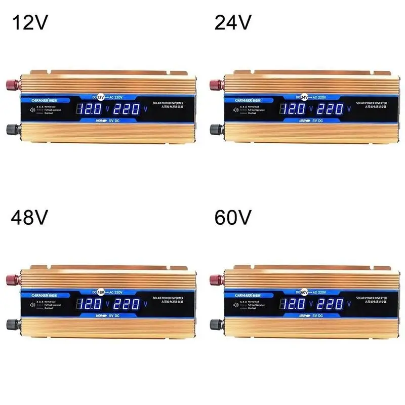 Характеристики:-Версия: от 12 В до 220 В, от 24 В до 220 В, от 48 В до 220 В, от 60 в до 220 В-Цвет: золото-Д * Ш * В: 17*10*5 см-Материал: алюминиевый сплав-Пиковая мощность: 2000 Вт-Непрерывная мощность: 1000 Вт-Цифровой дисплей: Входное/выходное напряжение-Входное напряжение: DC 12V/ 24V/ 48V/ 60V-Выходное напряжение: AC 220V-Эффективность преобразования: более 90%-Форма волны: Модифицированная синусоида-Область применения: бытовые электроприборы и др.Особенности:-Противоударная функция-Функция защиты от перенапряжения-Функция защиты от перегрузки-Функция защиты от перегрузки по току-Функция защиты от перегрева-Функция защиты от короткого замыкания-Функция отображения входного/выходного напряжения-Сохранить ваши устройства и автомобиль в безопасности-Встроенный вентилятор охлаждения для срока службы и безопасного использования-Умный размер светильник и совместимость, меньший уровень шума и отсутствие загрязнений-Идеально подходит для питания смартфонов, ноутбуков, планшетов, GPS-устройств, телевизоров, зарядных устройств, DVD-плееров, MP3-плееров, кемпинговой техники и мобильной офисной техники, полевого освещения и т. Д.Посылка входит:-1 солнечный инвертор-1 пара кабель с зажимом-1 руководство пользователя на английском языке