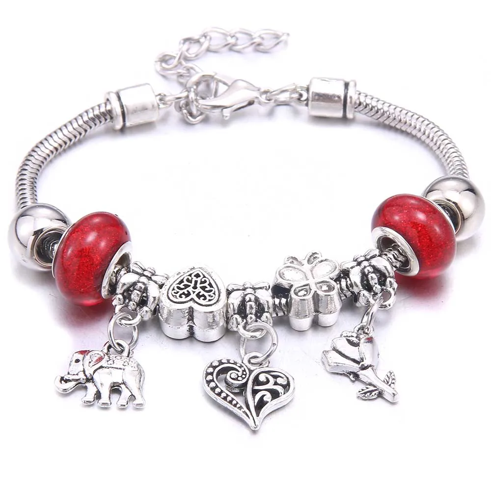 Новый модный браслет из натурального камня с бусинами, красные бусины с кристаллами, подвеска со слоном, романтический энтузиазм, женский браслет на руку