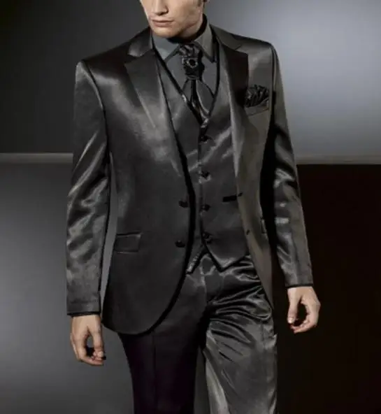 Мужской однобортный атласный смокинг, серые однобортные брючные кос...