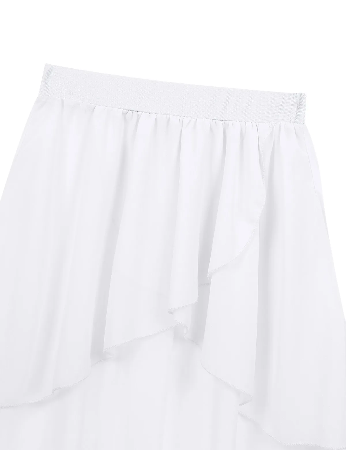 Детский однотонный короткий топ и юбка для девочек. Таблица размеров означает возраст для девочек, но только для общего руководства. Укороченный топ с длинными рукавами и застежкой на пуговицы. Эластичная ткань, удобная в носке. Платье с асимметричным подолом и разрезом спереди; Цельный шифоновый светильник, который изящно течет с каждым движением. Идеально подходит для всех видов танцев, гимнастики, фитнеса, тренировок и выступлений на сцене и т. д.