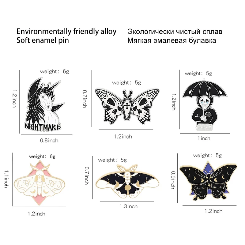 Эмалированные заколки для лацканов в виде скелета бабочки моли лошади темные панковские броши значки модные заколки подарки для друзей оптом