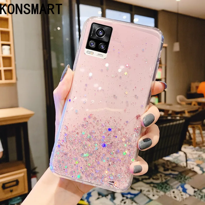 Чехол для VIVO V20, роскошный блестящий Мягкий силиконовый чехол-накладка со звездами, VIVO V20 Pro, милый прозрачный защитный чехол из ТПУ для телефона s