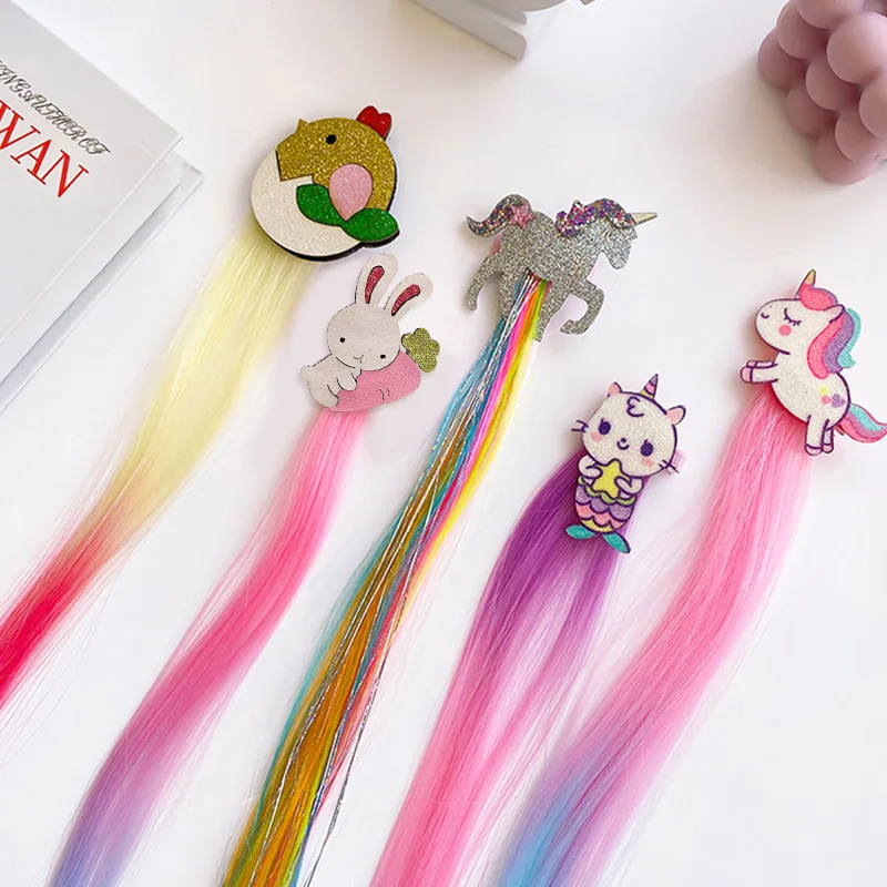 Детские Мультяшные парик цвета радуги заколки для волос в виде един...