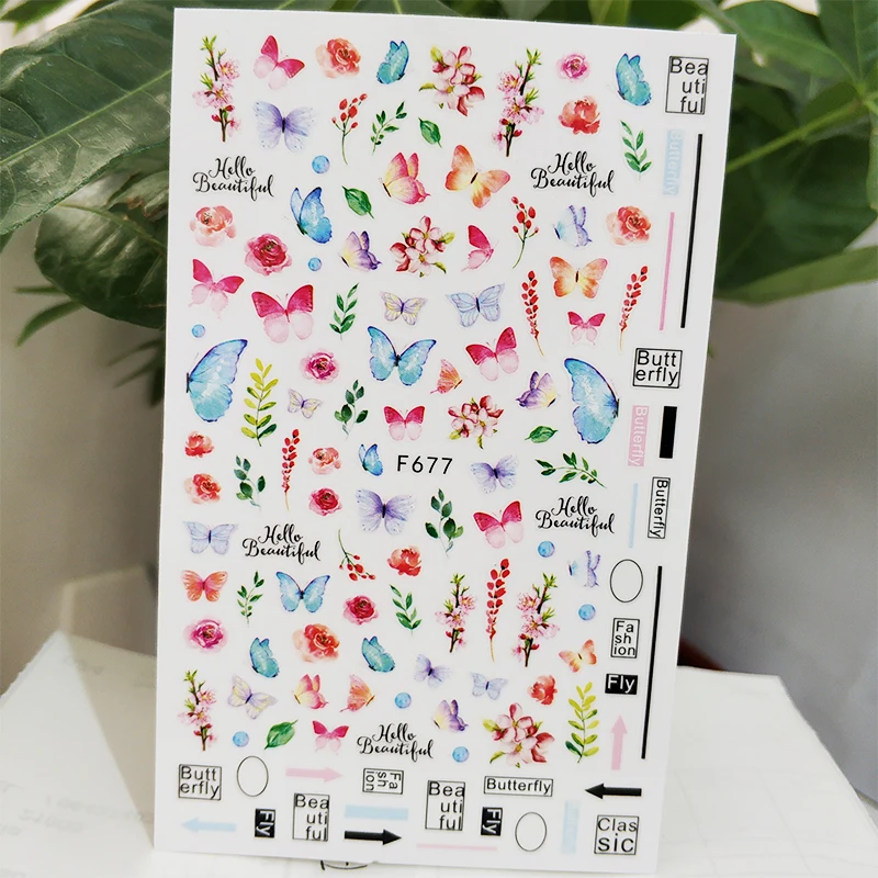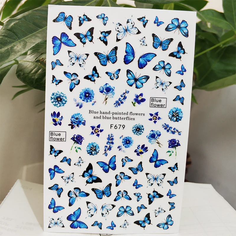3D наклейки для ногтей, наклейки, самоклеящиеся дизайнерские наклейки для ногтей, бабочка, цветок, трава, наклейки для маникюра, украшение для ногтевого дизайна