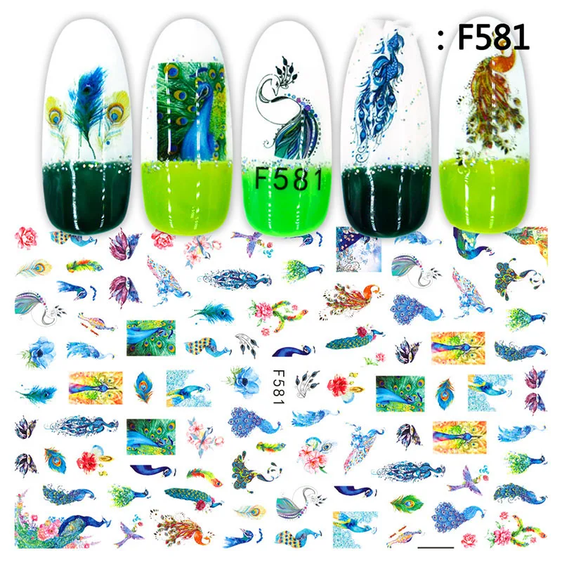 Павлина Featther клей 3d наклейки для ногтей Фольга для художествен...