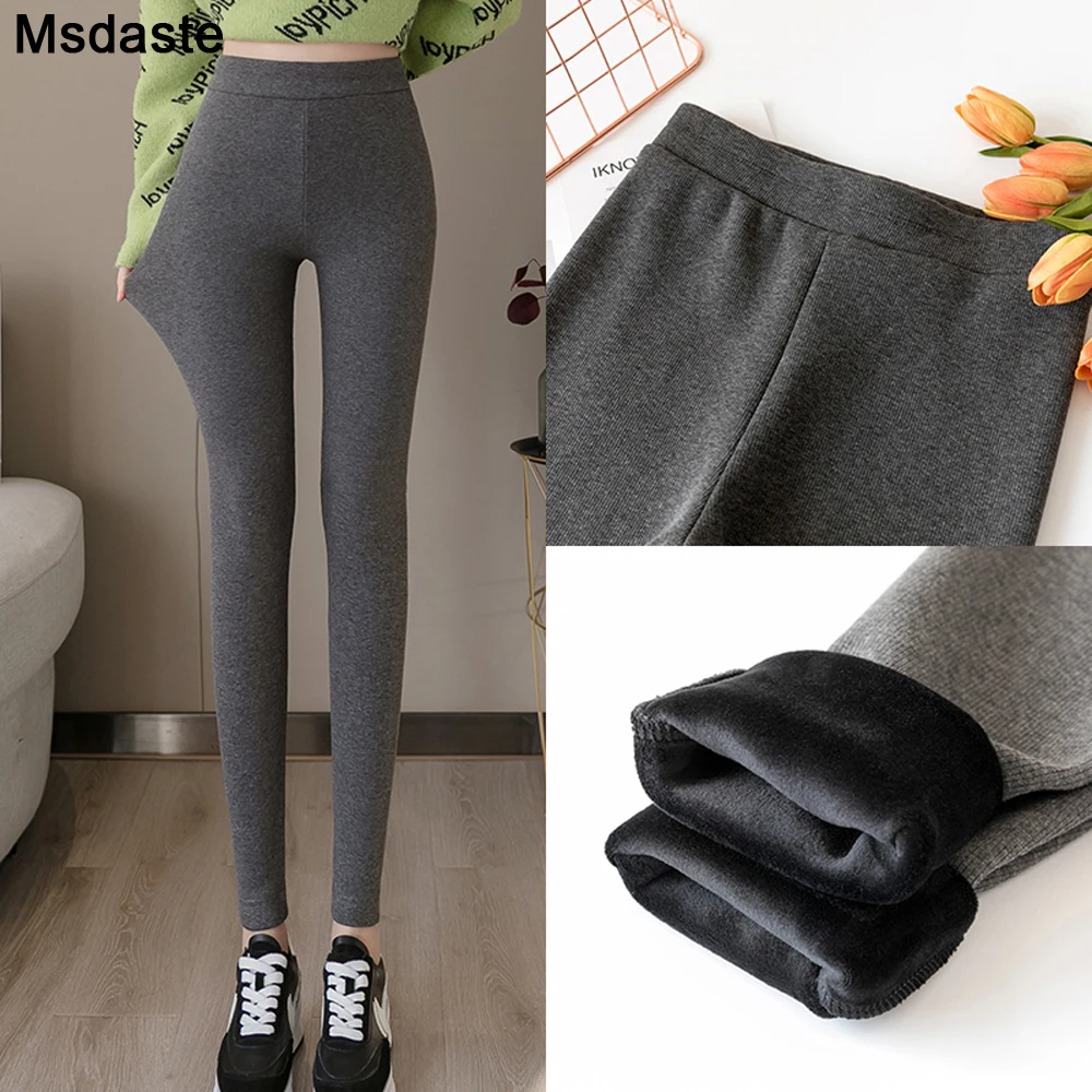 Теплые флисовые леггинсы одежда для женщин, зимняя размера плюс; Хлопковые бархатные облегающие эластичные брюки с высокой талией женское нижнее белье брюки