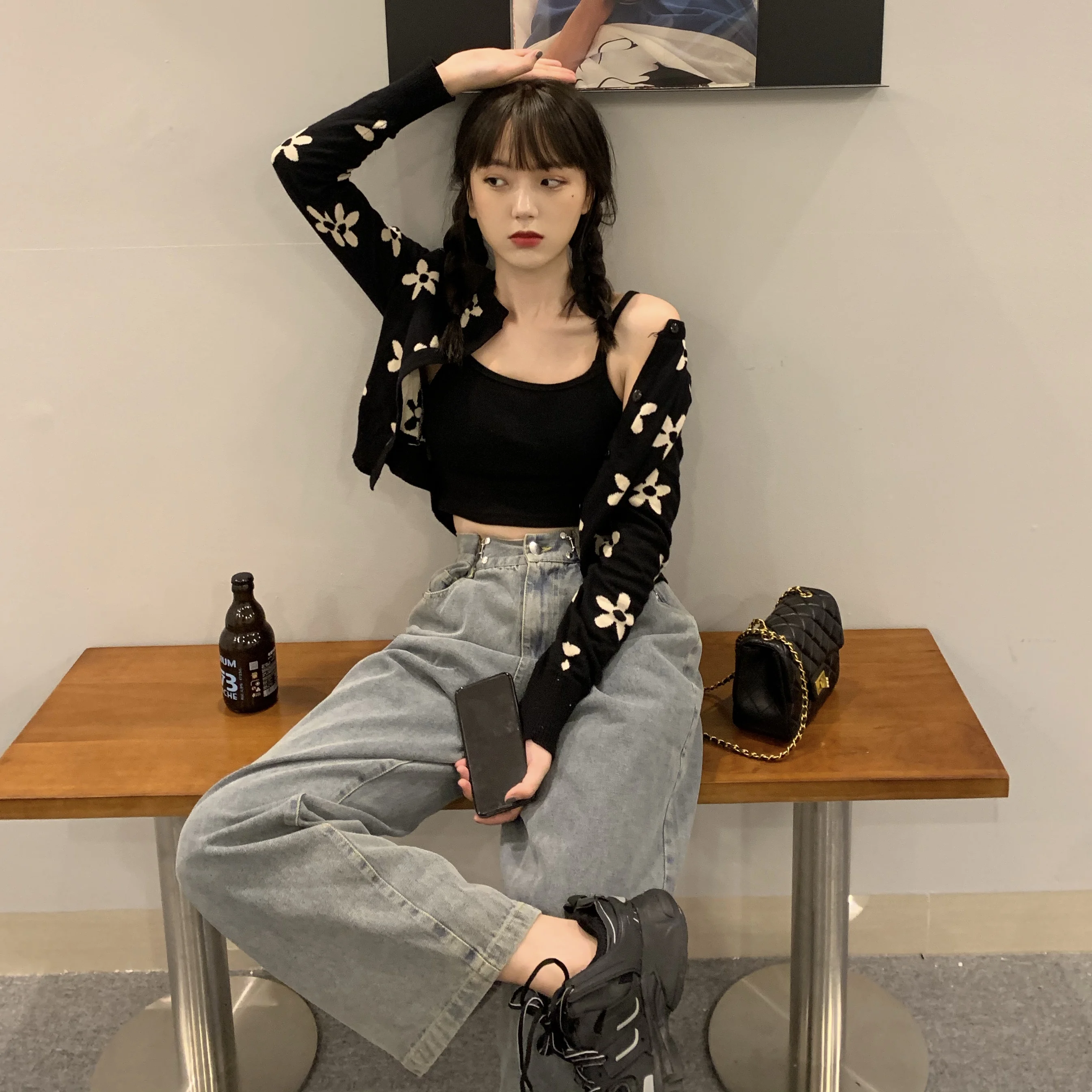 Женский Повседневный свитер в Корейском стиле Харадзюку, свободный свитер с цветочным принтом, Женская винтажная одежда в японском стиле Kawaii Ulzzang