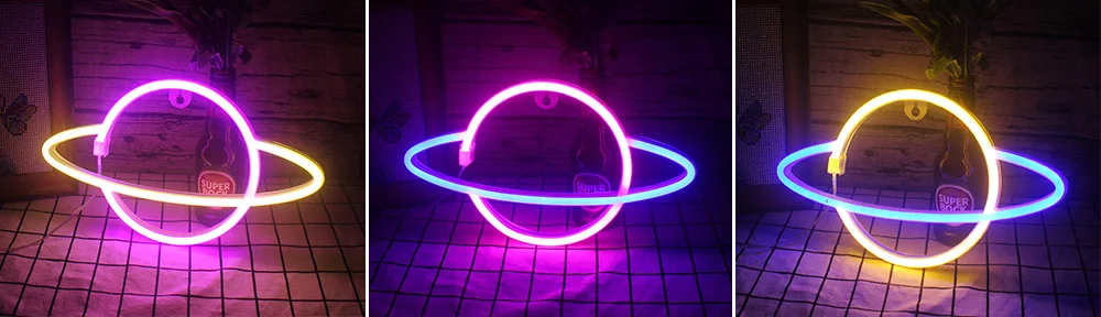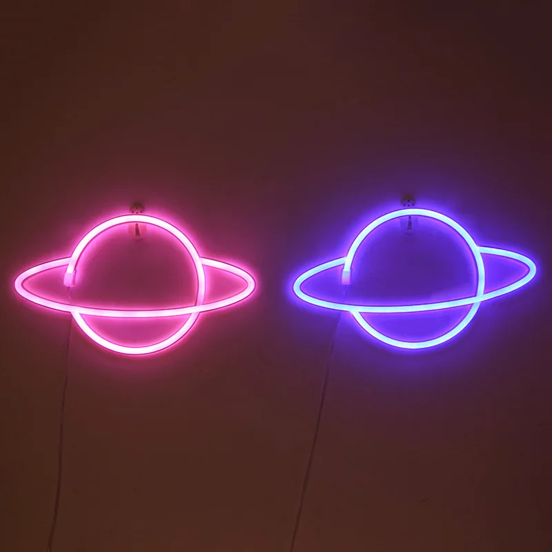 Светодиодная неоновая настенная лампа в виде планеты, сказочные рождественские светильники с питанием от USB и питанием от батарейки для спальни, гирлянда, украшение для свадебной вечеринки