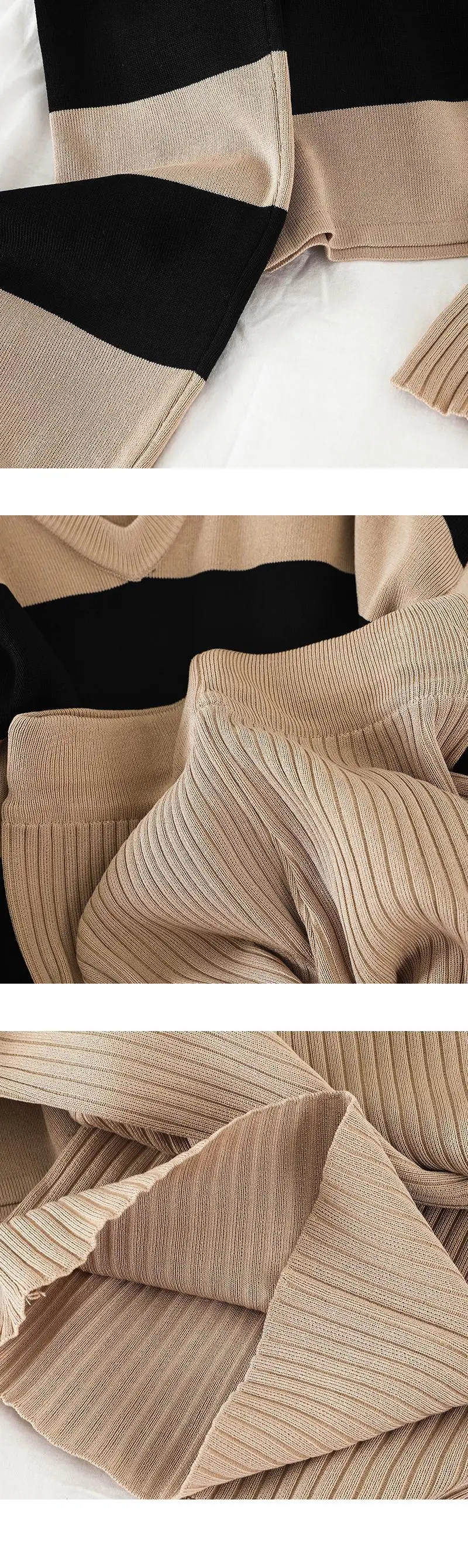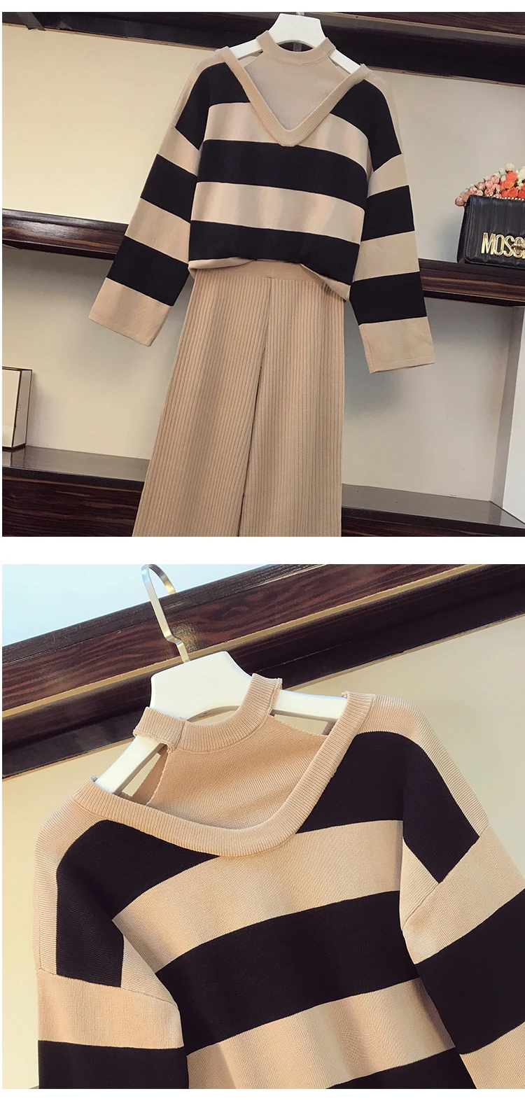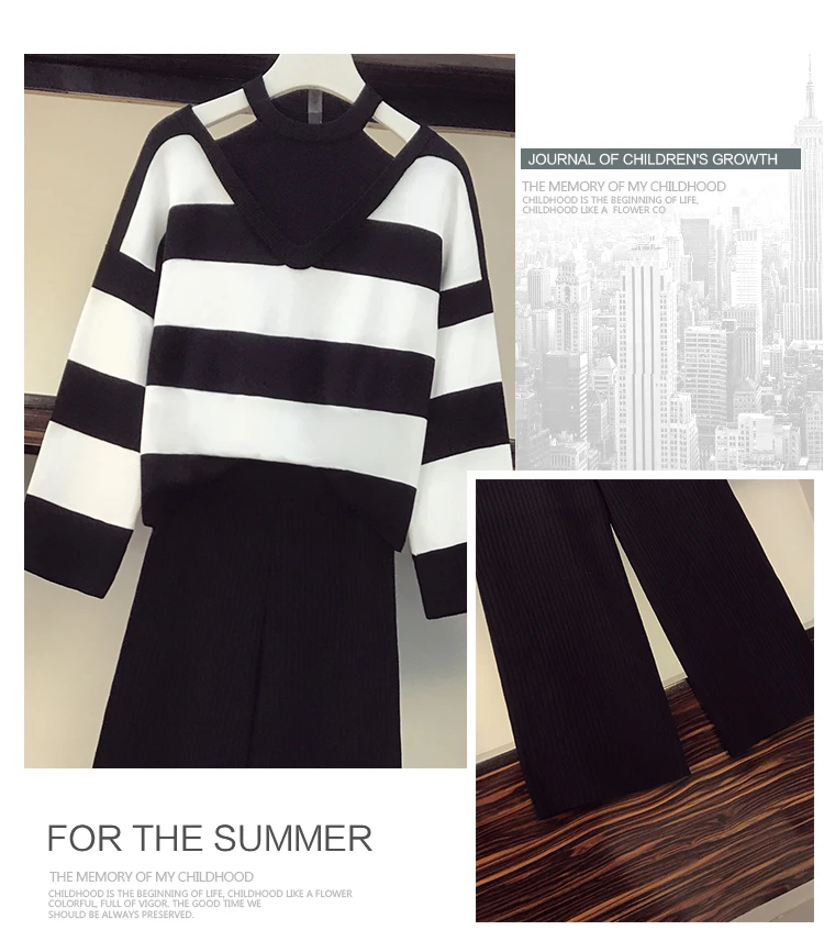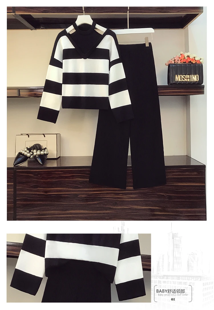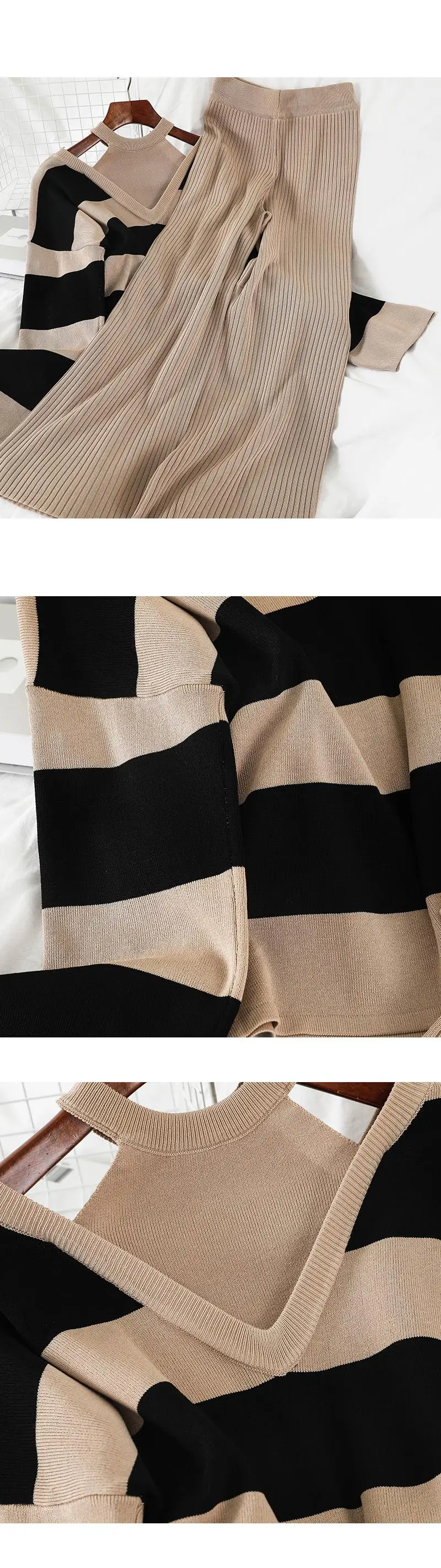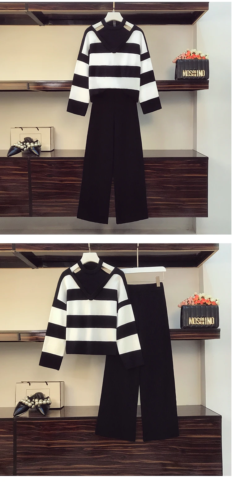 Костюм женский трикотажный, прямой, с широкими штанинами, в полоску