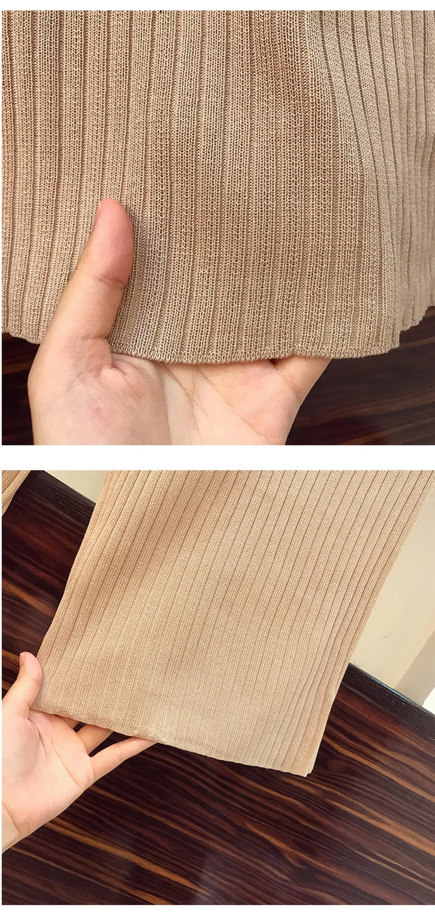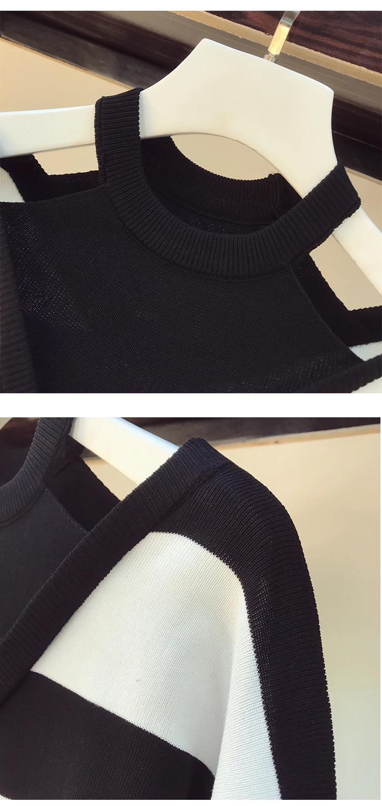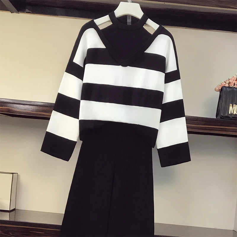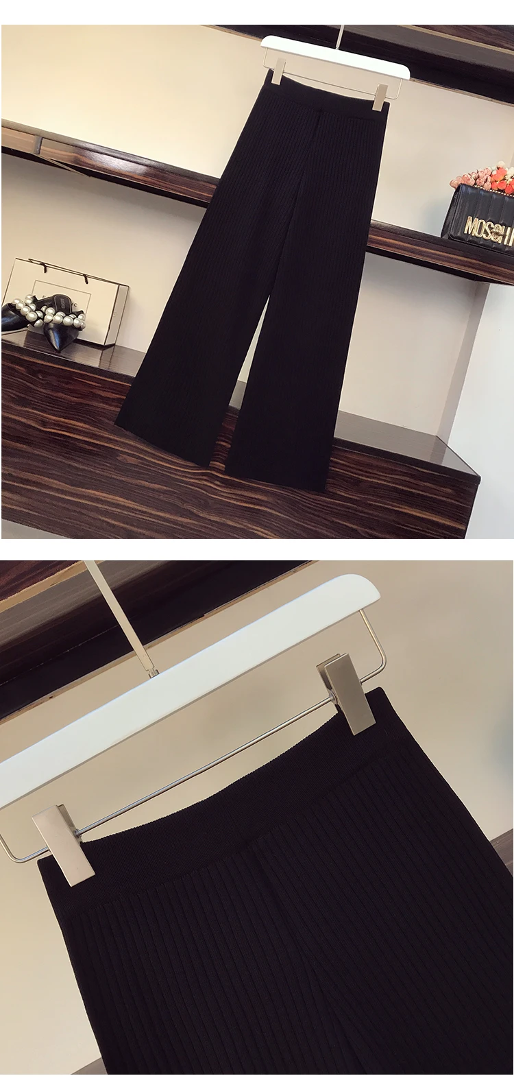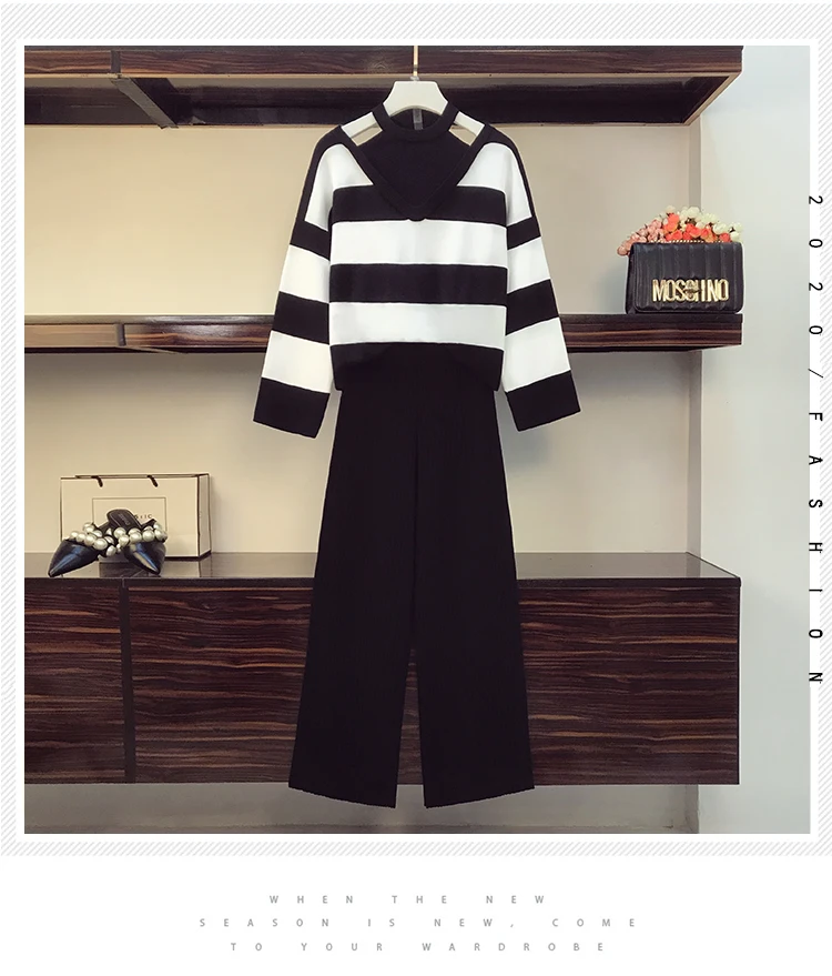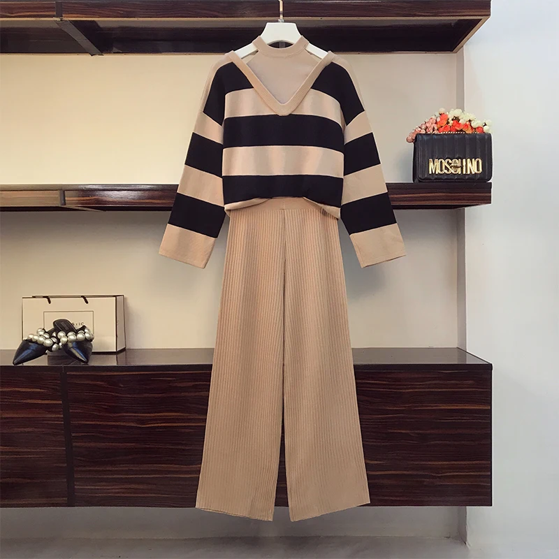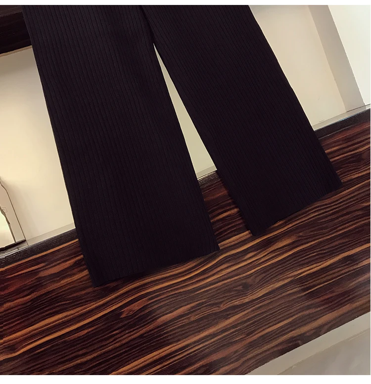 Костюм женский трикотажный, прямой, с широкими штанинами, в полоску
