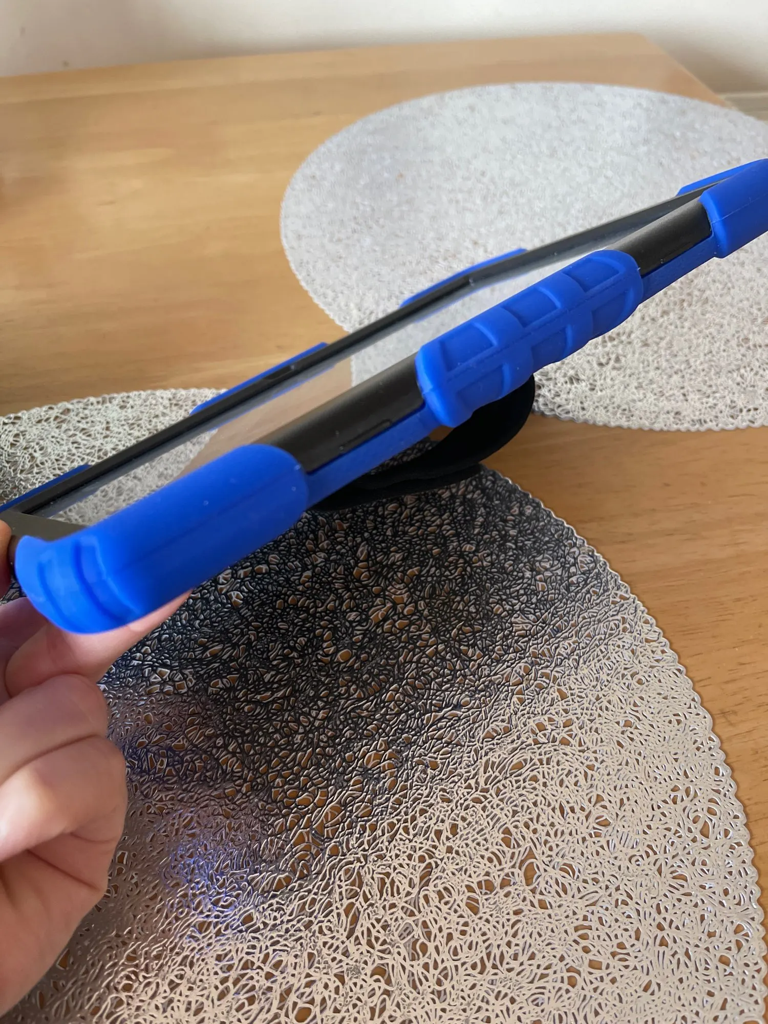 Точное описание продукта. Чехол отлично закрывает планшет и очень хорошо защищен как сзади, так и спереди. Он практически ничего не весит и держит руку очень хорошо, липучка прочная, поэтому ее нелегко снять. Проектор экрана поставляется с пакетом, но он поставляется отдельно.