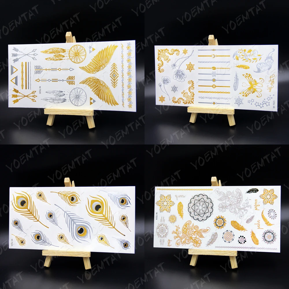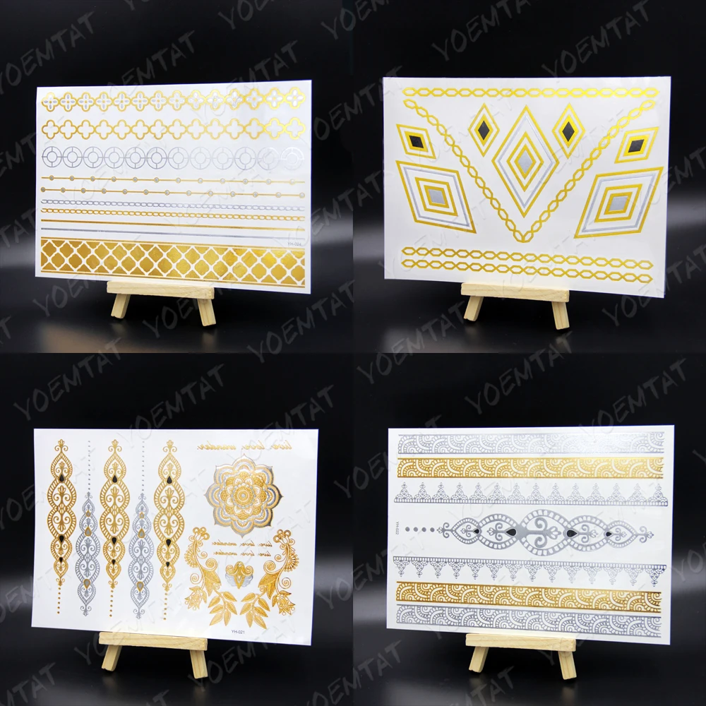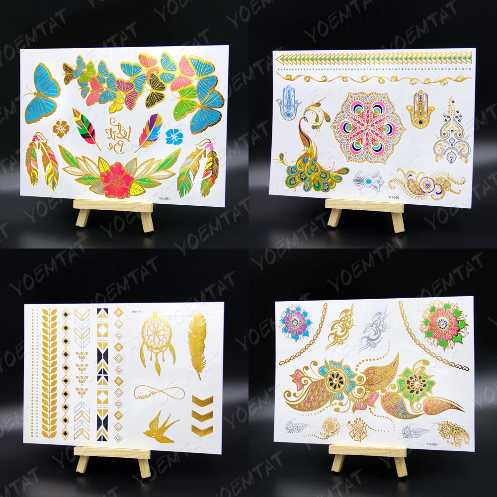 Водостойкая временная татуировка наклейка Металл золото серебро браслет Слон Мандала Цветок флэш-тату рука хна для боди Арта поддельные татуировки