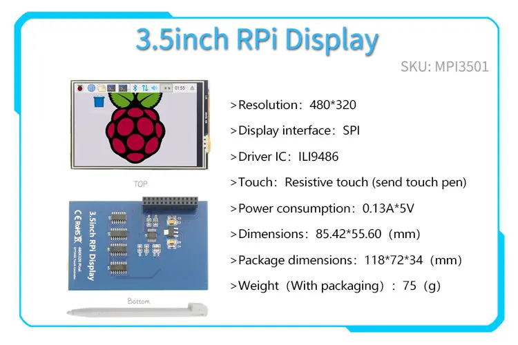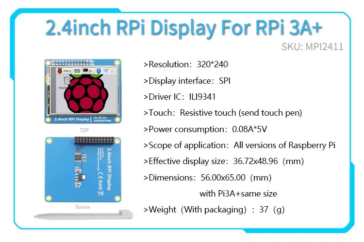 Дисплей для Raspberry Pi 4B 3B B +, сенсорный экран 3,22,83,23,52,4 дюймов, серия GPIO 2,83,23,5 дюйма