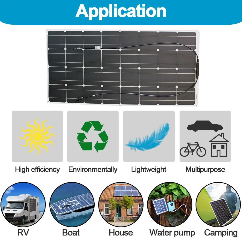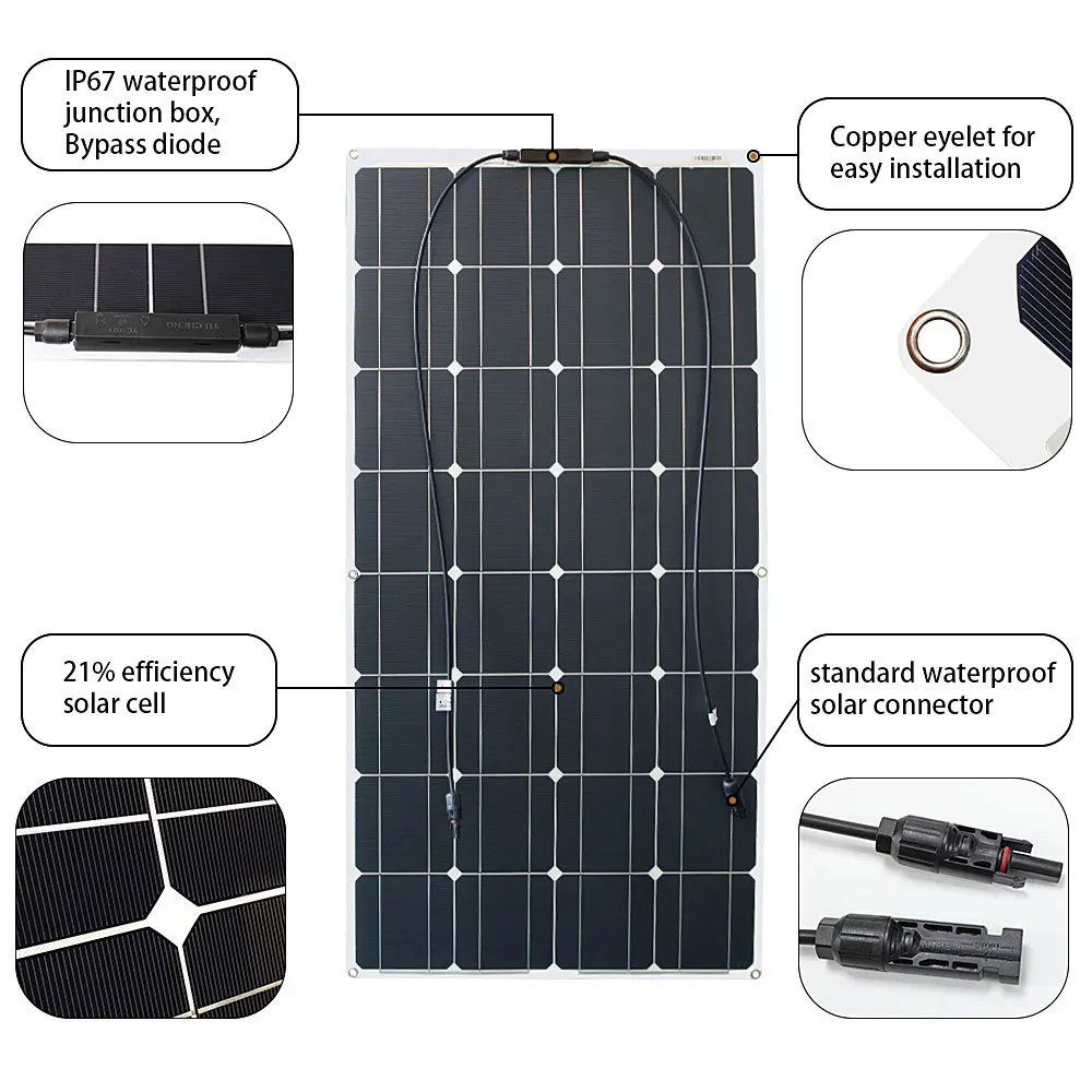 12 В Гибкая солнечная панель 100 Вт 200 Вт 300 Вт 400 Вт моно солнечная батарея Водонепроницаемая солнечная панель комплект 100 Вт 200 Вт 300 Вт.