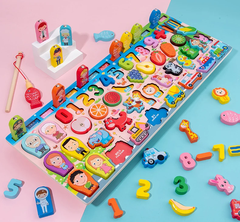 Обучающие деревянные игрушки Монтессори 3D, детская доска, математическая рыбалка, детская деревянная Дошкольная игрушка Монтессори, детские игрушки
