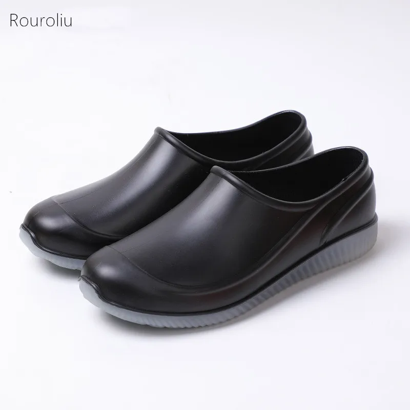 Rouroliu для влюбленных; Ботильоны на платформе; Женские резиновые сапоги; Обувь на плоской подошве; Водонепроницаемая обувь; Мужские Водонепроницаемый рабочие ботинки для влюбленных; Обувь для дождя из размера плюс; Большие размеры 36-45