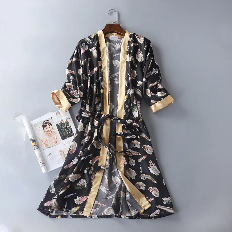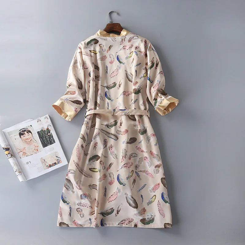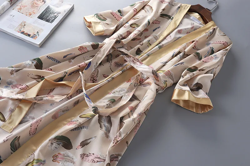 Халат мужской и женский, Шелковый, с принтом, три четверти