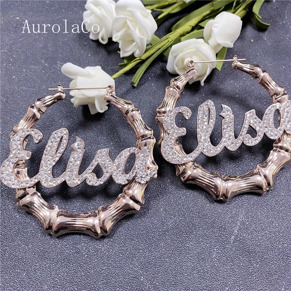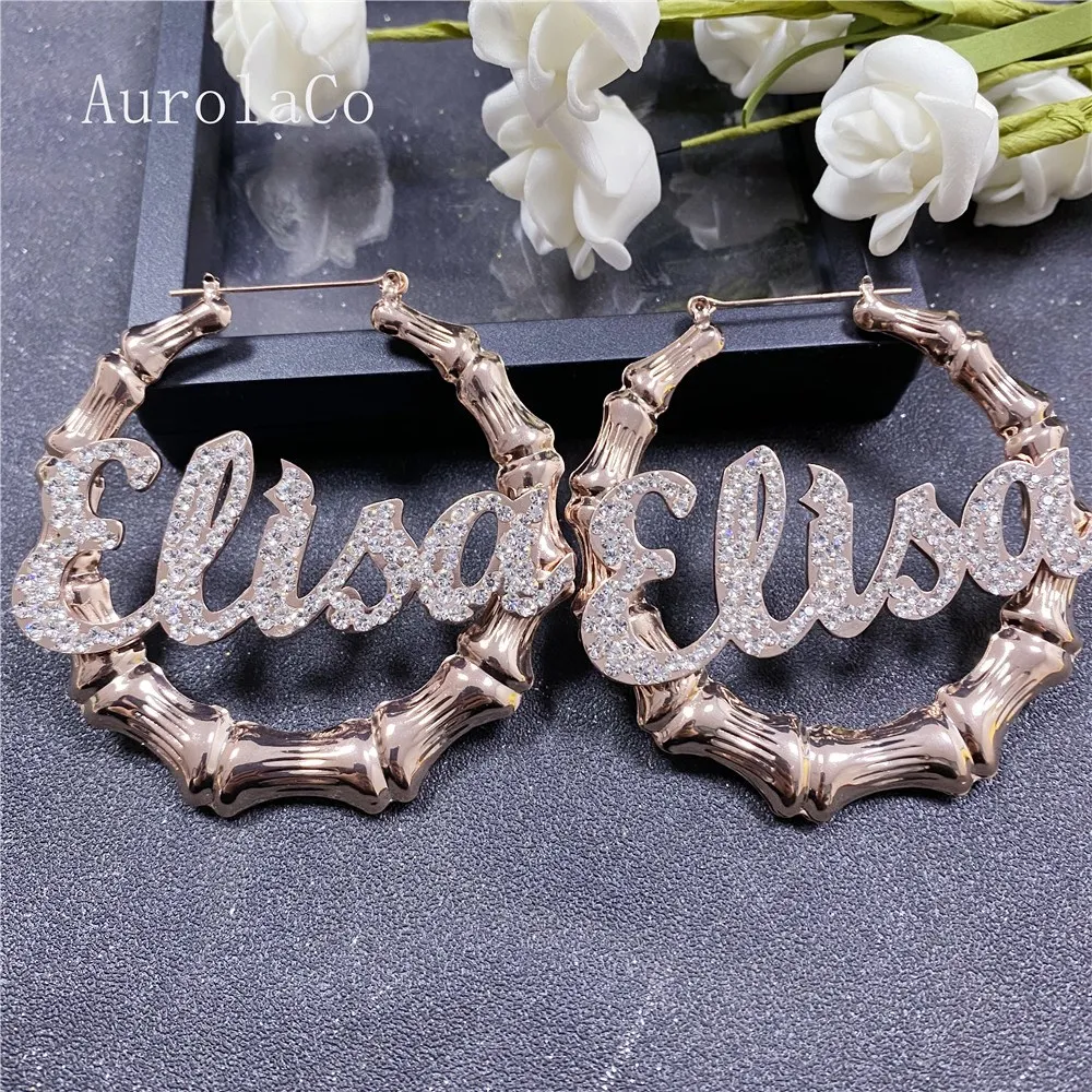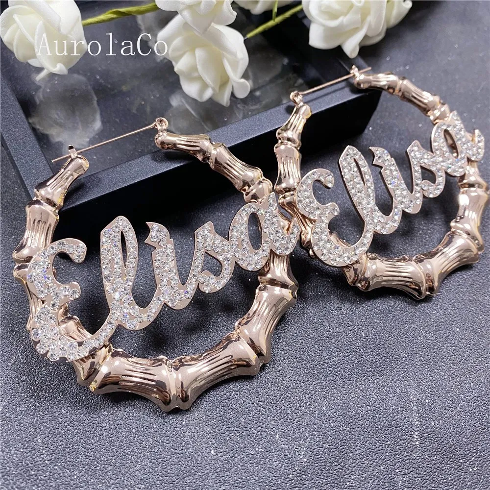 AurolaCo в стиле хип-хоп, модные популярные пользовательское имя серьги сексуальные трусы с бамбуковой круг точка ювелирные изделия с бриллиантами, подарок на праздник