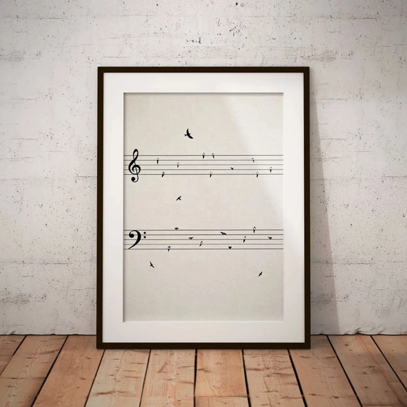 Постеры с птицами, винтажный постер, принты, музыка, настенное искусство, Картина на холсте, музыкальные ноты, декор комнаты, музыка, подарок учителю