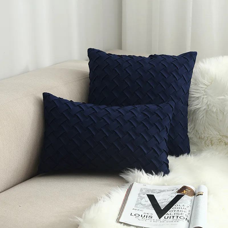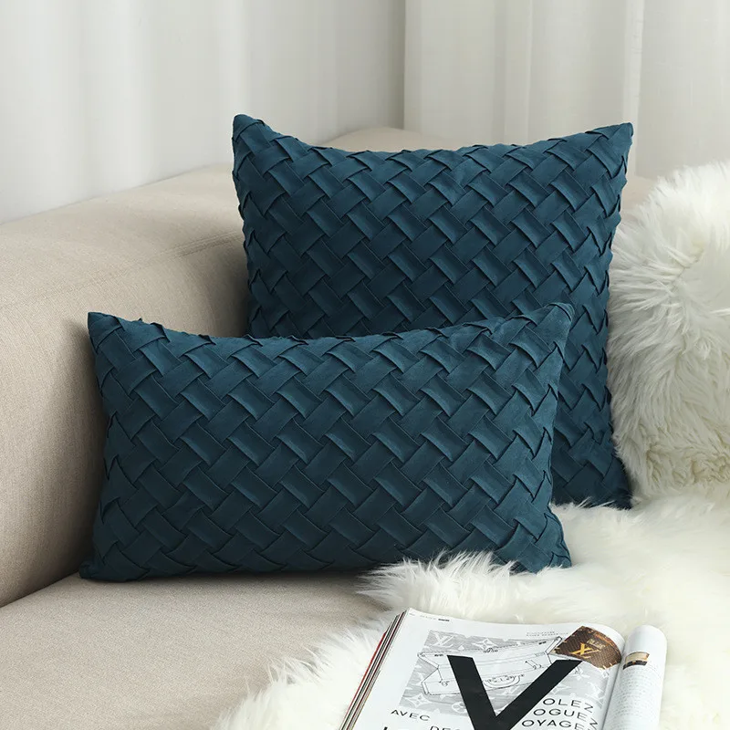 Синяя наволочка из мягкой искусственной замши для домашней декорати...