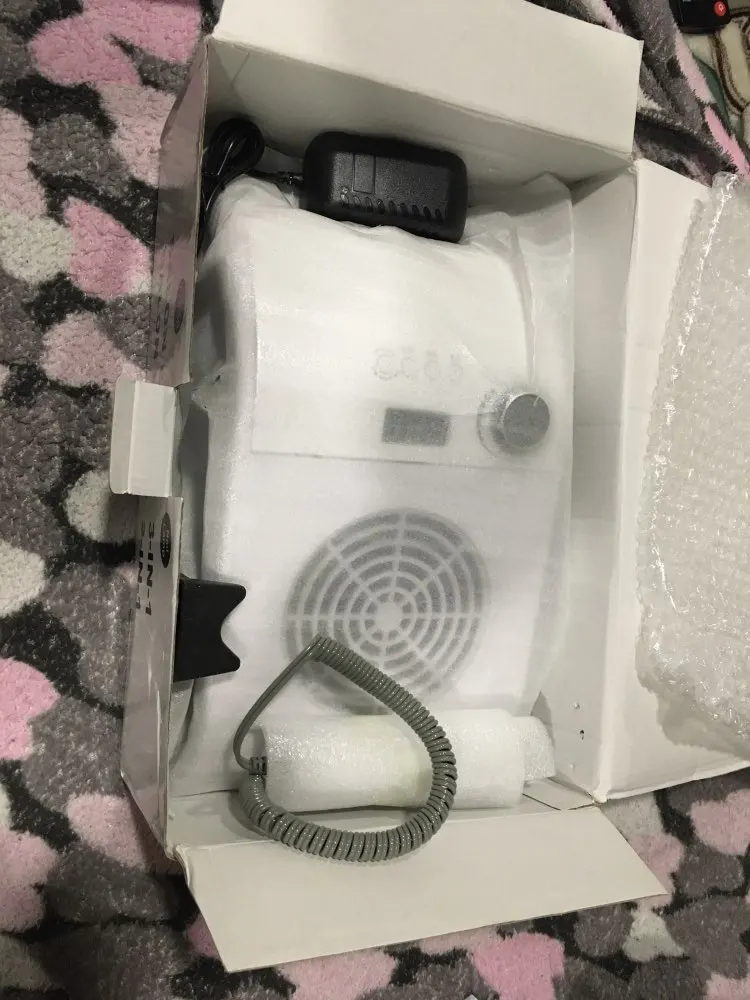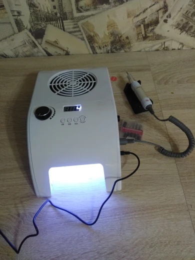 Прекрасный аппарат, вытяжка мощная, лампа ярка(в деле пока не пробовала) фреза тоже с задачей справляется, единственный минус фрезы - нет переключателя для смены направления... сверло крутится только в одну сторону, заказывала с рф, товар пришел быстро