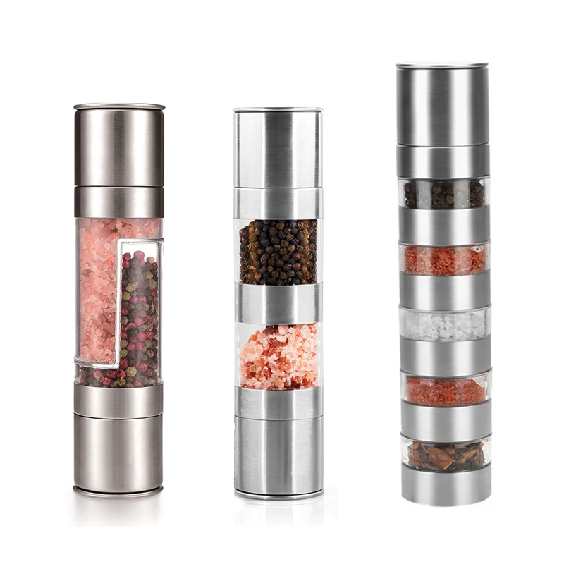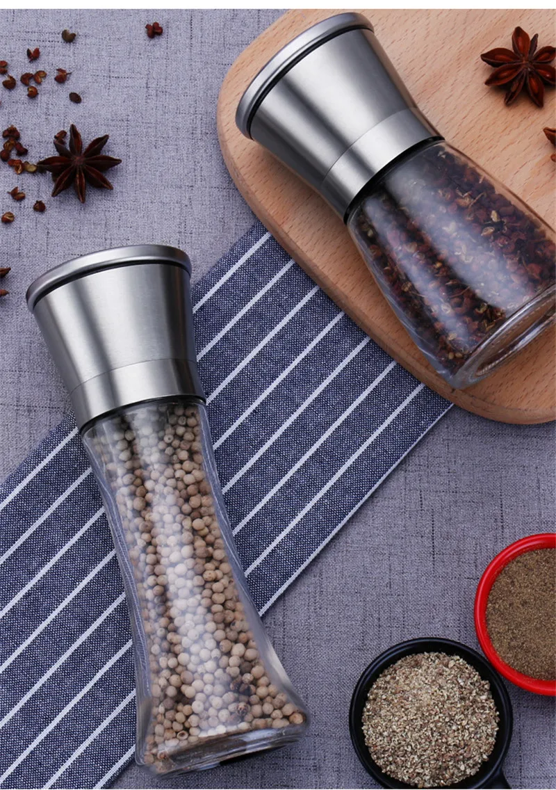 Мельница для перца из нержавеющей стали, стеклянная перечная дробилка для морской соли, тмин, гвоздика, кухонная банка для приправ, соль и перец