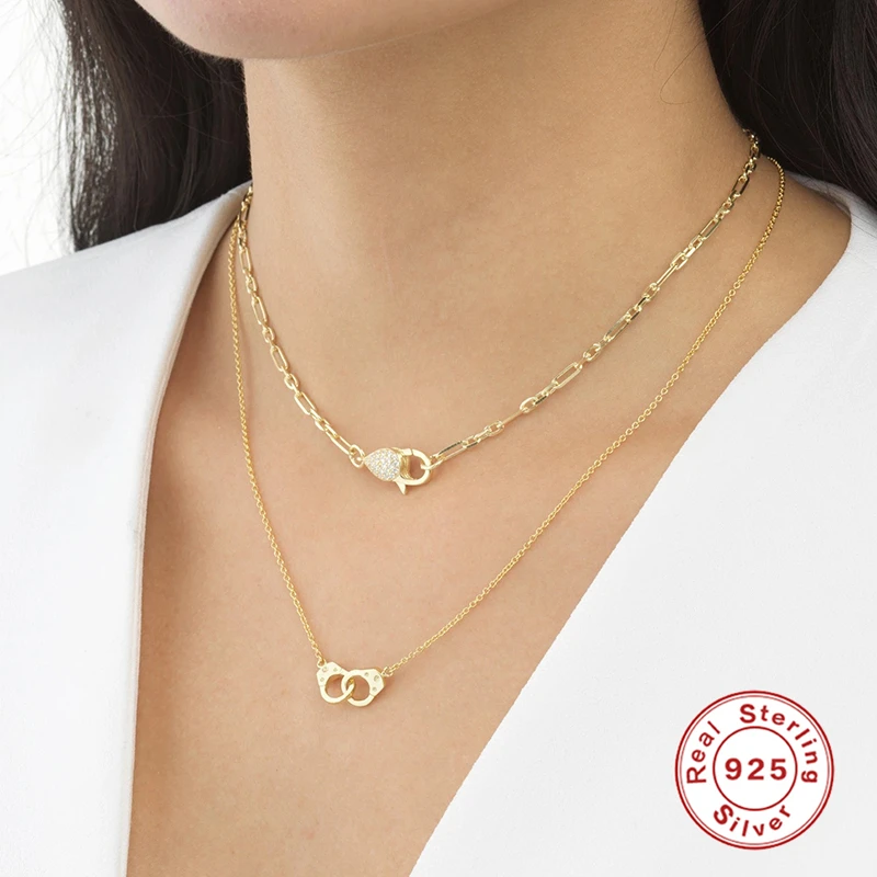 Aide, серебро 925 пробы, модное универсальное ожерелье с наручниками, стимпанк, массивное ожерелье, пара, готическое ожерелье, подарки для женщин