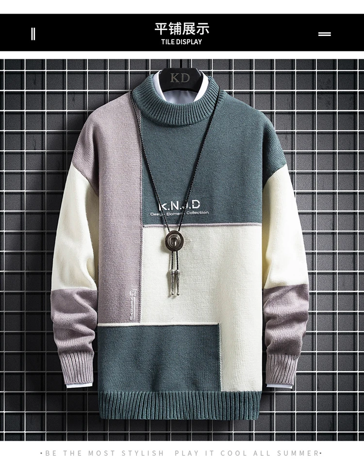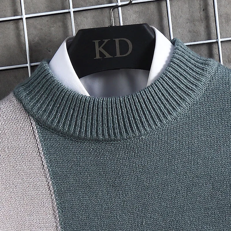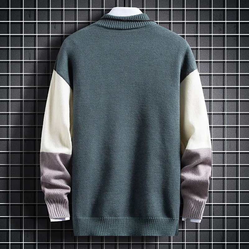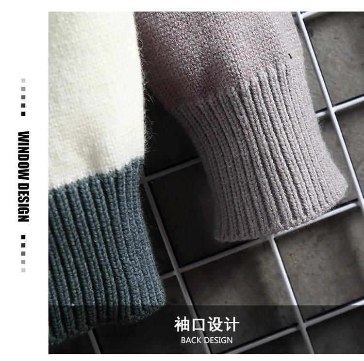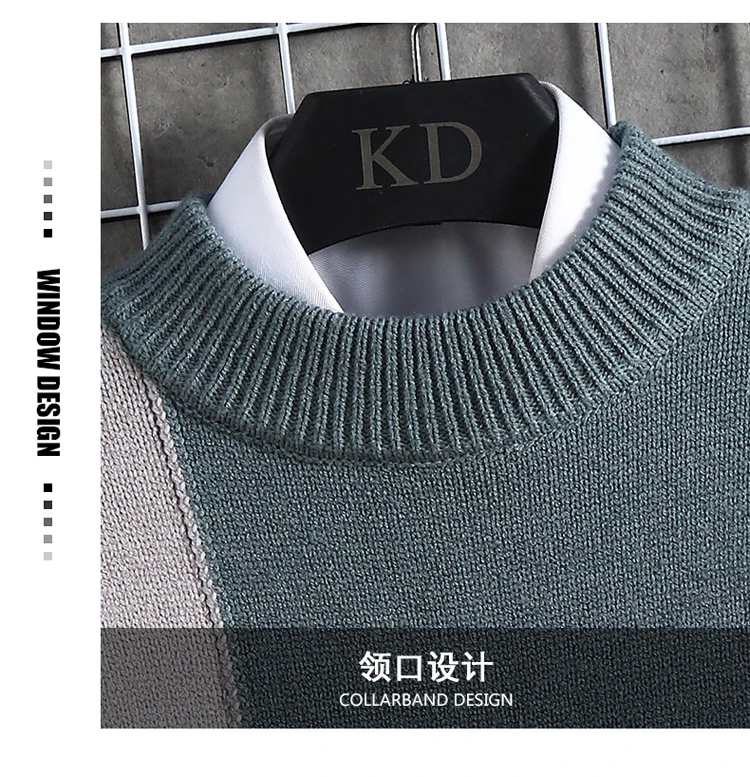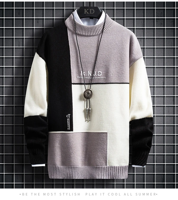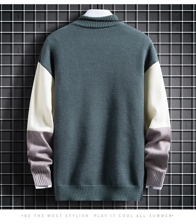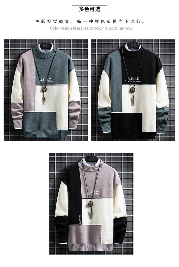 Новый Зимний теплый свитер, мужской пуловер в стиле пэчворк с цветными блоками, модные корейские приталенные свитера, топы, вязаный мужской рождественский джемпер
