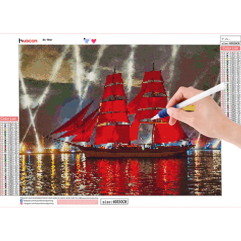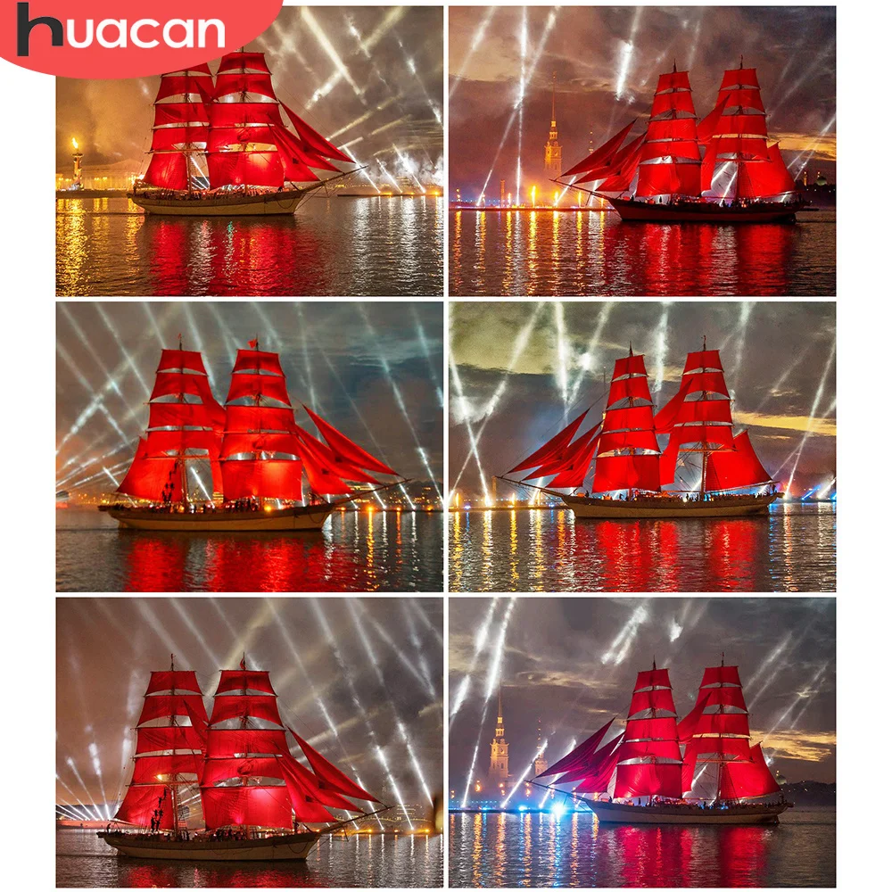 Алмазная живопись HUACAN, пейзаж, корабль, разы картин, вышивка крестиком, полная квадратная Алмазная вышивка