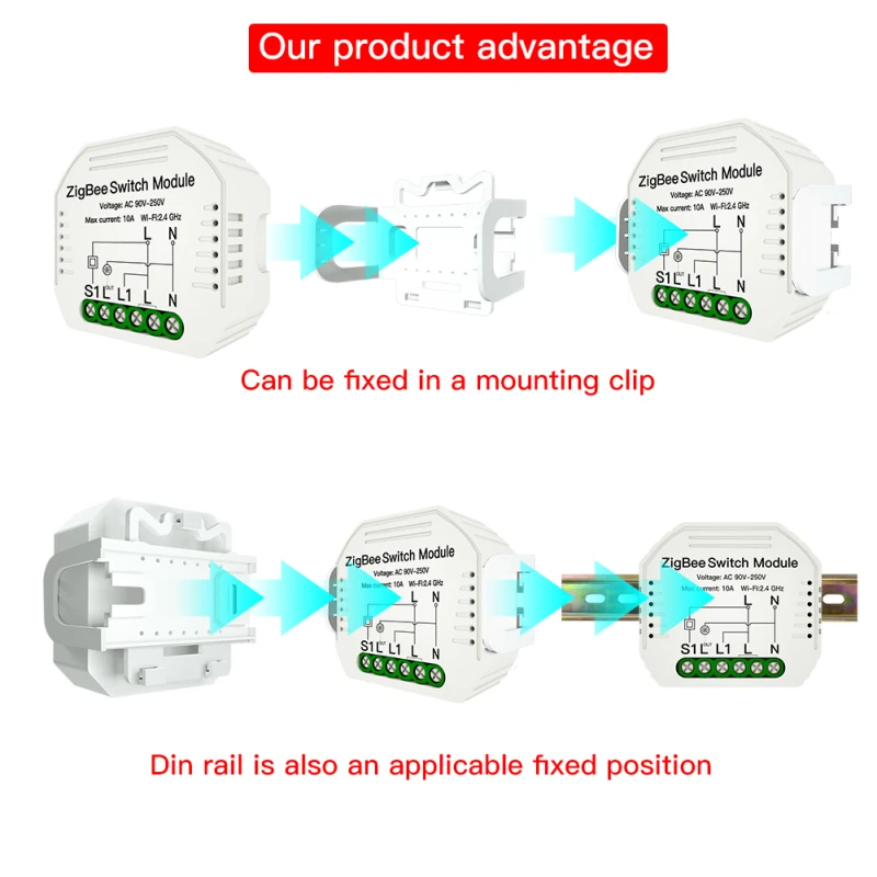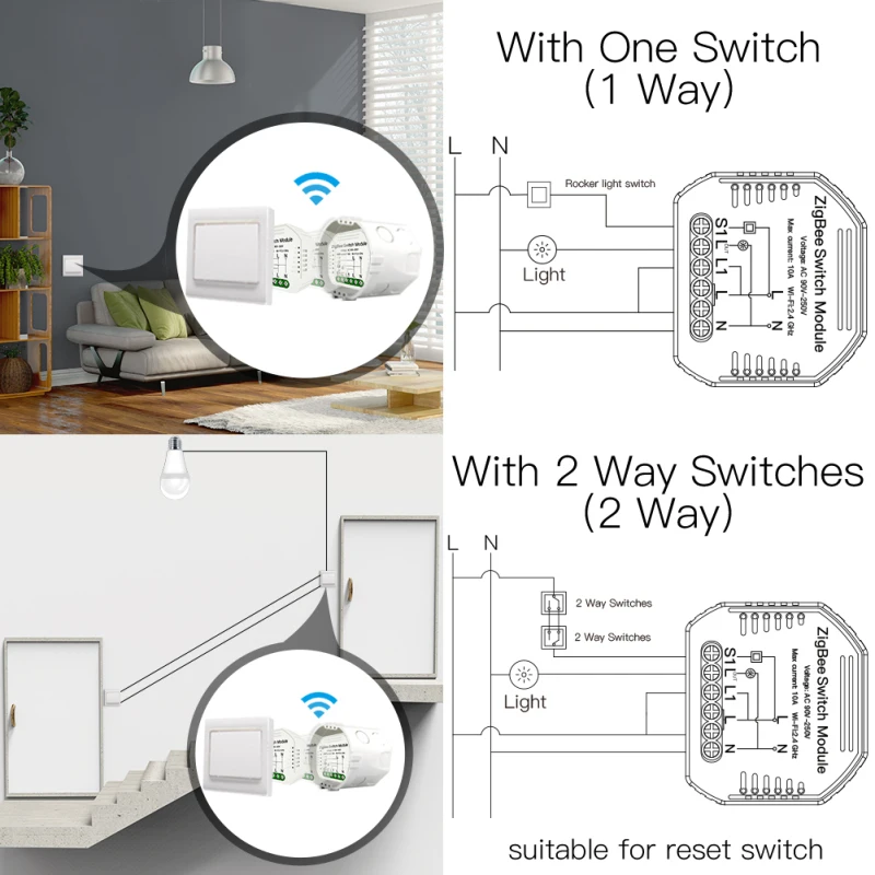 1. Этот умный модуль Tuya ZigBee 3,0 разработан специально с протоколом ZigBee 3,0, совместим с Tuya ZigBee hub, чтобы реализовать всю связь вашего дома, действительно хорошая замена нестабильного Wi-Fi. Протокол ZigBee 3,0 с мини-дизайном костюмы для ЕС/настенный переключатель стандарта Великобритании коробка, И легко спрятать его в вашу скрытую настенная коробка переключателей вашего традиционного переключателя без какого-либо влияния на ваш оригинальный стиль украшения, чтобы сделать его умным, предоставляя вашим устройствам максимальную мощность включения/выключения, умный макияж и конвертировать большинство любых совместимых продуктов в умные; Традиционный переключатель и этот умный модуль могут работать независимо без помех. (Примечание: Этот модуль подходит только для перекидного выключателя, см. Рис. 2 для получения подробной информации.)