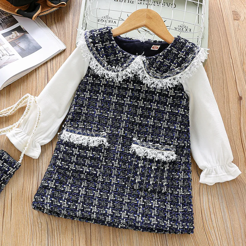 Jargazol осенняя одежда для детей вязаный плед платье принцессы с длинным рукавом Зимние тёплые флисовые топы для детей ясельного возраста, для девочек, костюм с принтом Vestidos