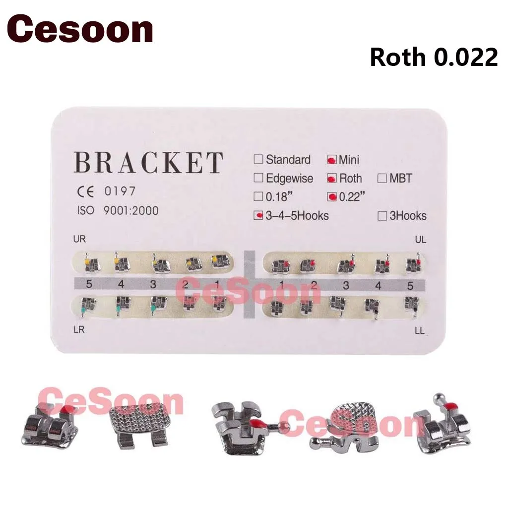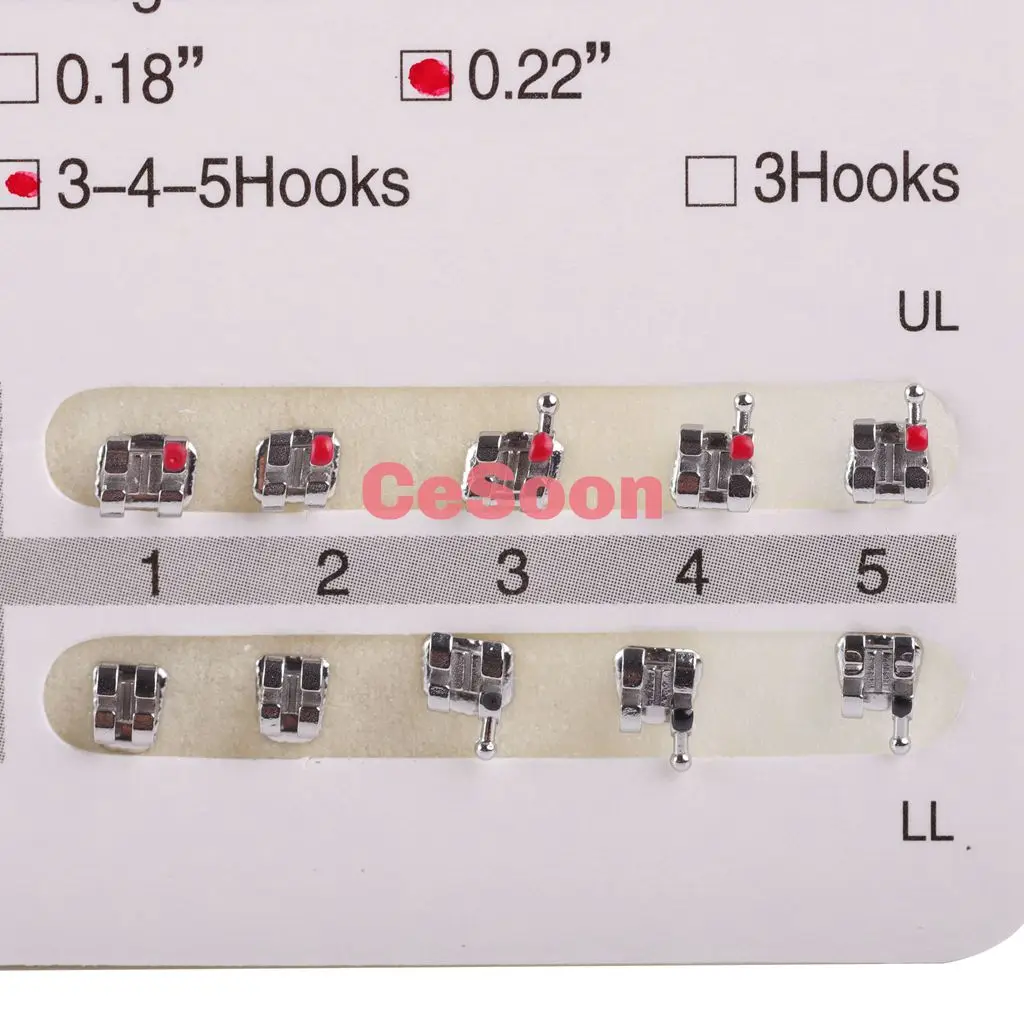 Стоматологические Ортодонтические скобы, прямые металлические скобы с аркой, скобы Mini RothEdgewiseMBT, слот 0,0180,022 Крючки 3 4 5, 10 упаковок