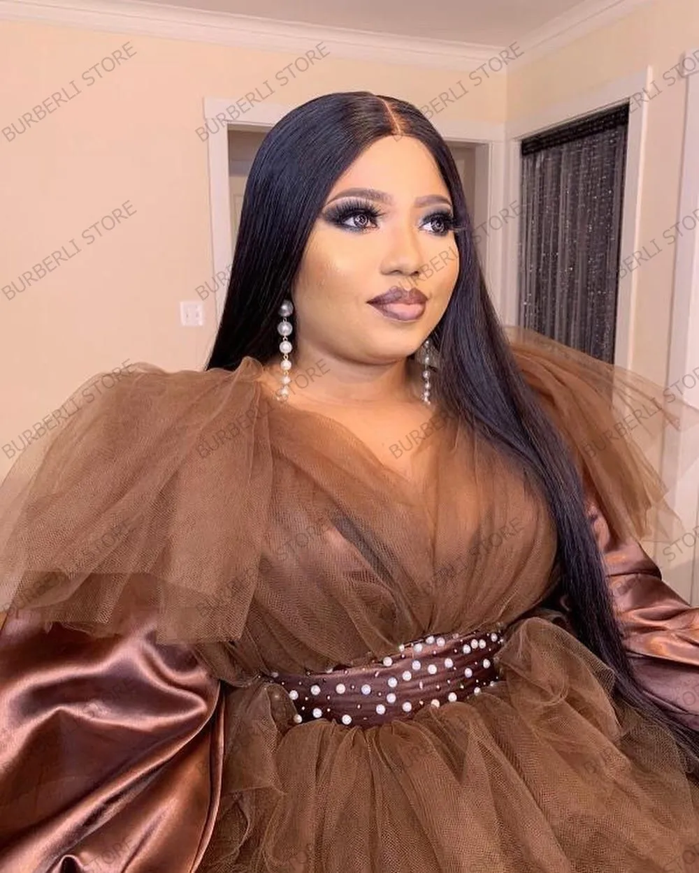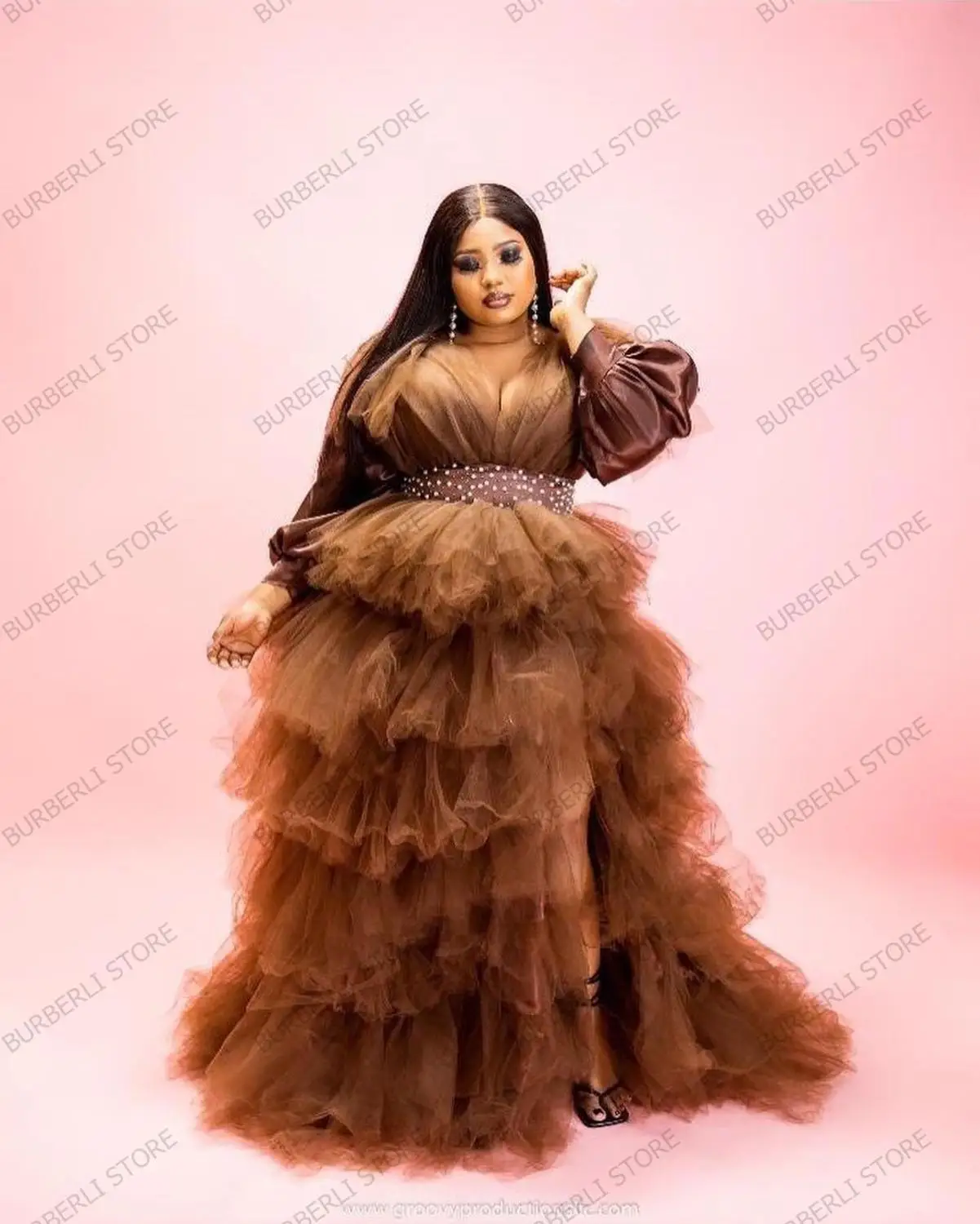 Коричневое Пышное вечернее платье из тюля в несколько рядов, женское длинное вечернее платье с оборками и высоким разрезом, деловые вечерние платья, платье для выпускного вечера, платье