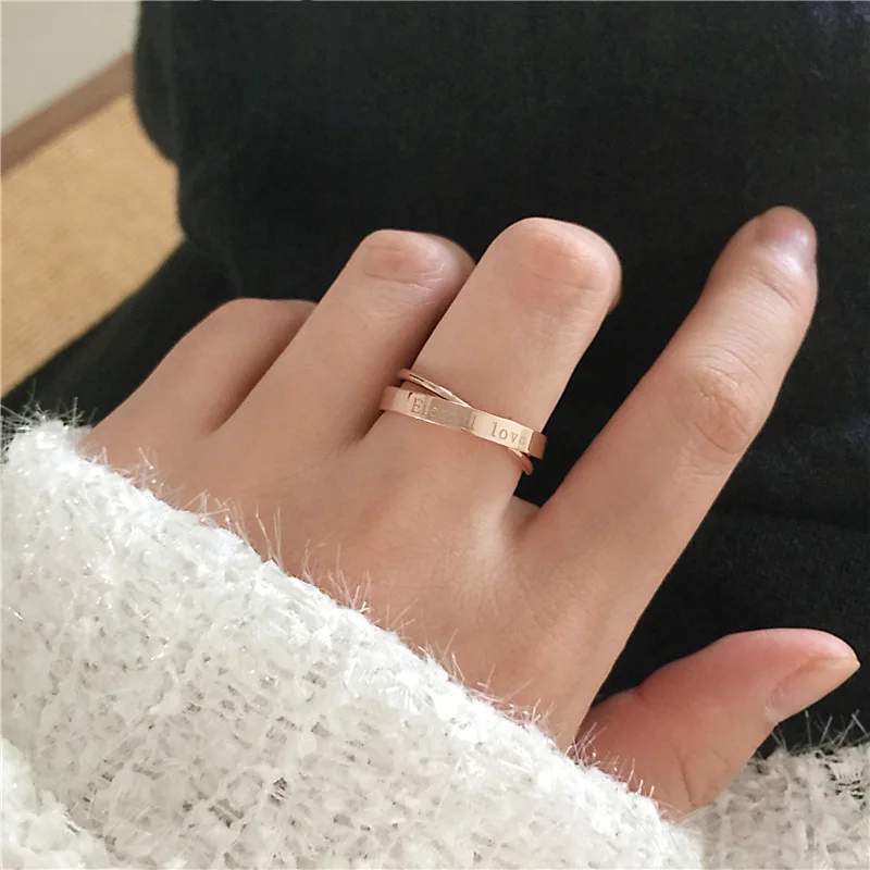 Роскошные брендовые двухслойные кольца KNOCK для женщин кольцо с надписью Вечная любовь ювелирные изделия из нержавеющей стали обручальные кольца