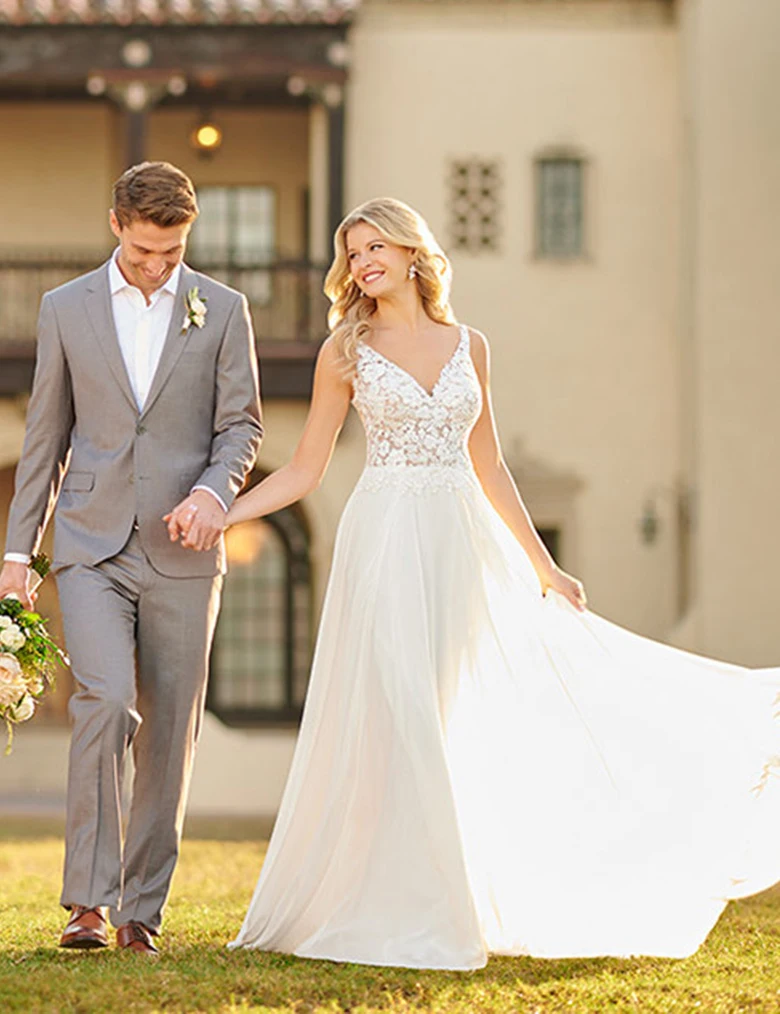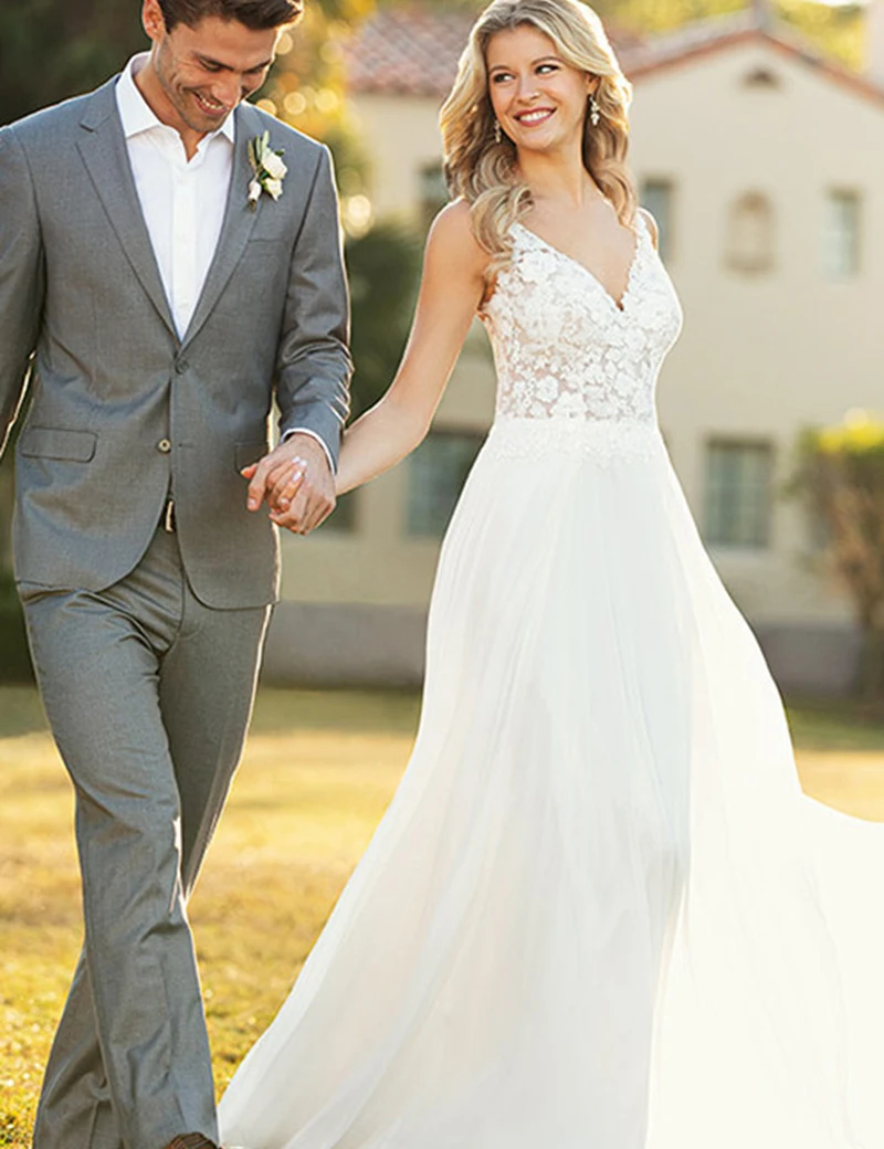 2021 год, Ruby Sexy V-образный вырез, Кружевная аппликация, трапециевидные пляжные свадебные платья, шифоновое платье для невесты, официальное платье