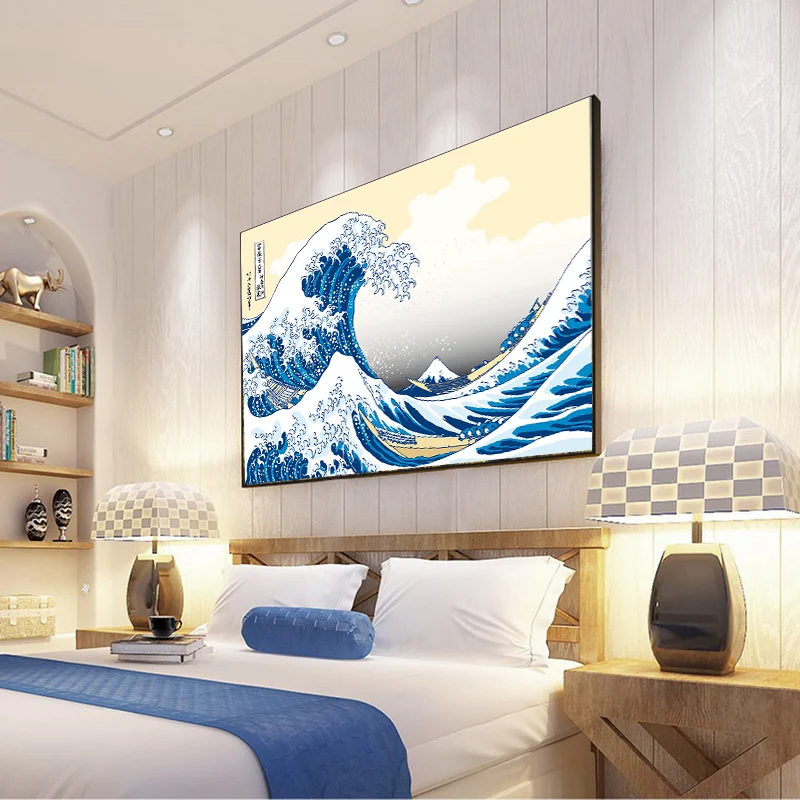 The Great Wave of Kanagawa Ukiyoe, японское искусство, рисунок на холсте, известная картина, украшение для гостиной, картина
