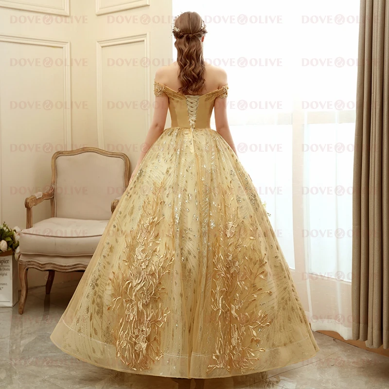 Золото Бальные платья 2020 кружево Аппликация Жемчуг бальное платье с блестками с открытыми плечами платье миди 15 anos Гладиатор с ремешками