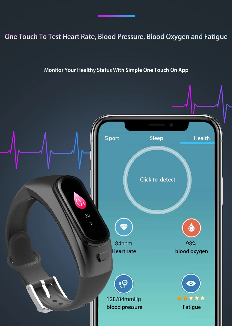 Мастер: для Nordic (NR52832QFAA) Шрифт: GT Bluetooth IC: CSR8645 L дисплея: цветной TFT-экран 0,96 дюйма 160*80 Сенсорное покрытие: одно касание 8001 G-Датчик: sc7a20 Частота сердечных сокращений: HRS3300 Вибрация: O827 Зарядка: контакт Емкость аккумулятора: 90 мАч Время ожидания: около 5 дней Время работы: около 3 дней Чехол: металл + ПК Ремешок: Силикон Языки APK: немецкий, французский, корейский, японский, испанский, итальянский, английский, китайский. Функция вызова: отвечайте на вызов, отклоняйте вызов, звоните в отчет Тип контроля: частота сердечных сокращений/артериальное давление/мониторинг кислорода в крови; Однокнопочный медицинский осмотр, тревога сердечного ритма. Тип напоминания: будильник/сообщение, удаленная фотография, низкое энергопотребление/зарядка/напоминание о подключении. Мониторинг сна Отображение: время/дата/Еженедельный дисплей. Три набора переключения пользовательского интерфейса.