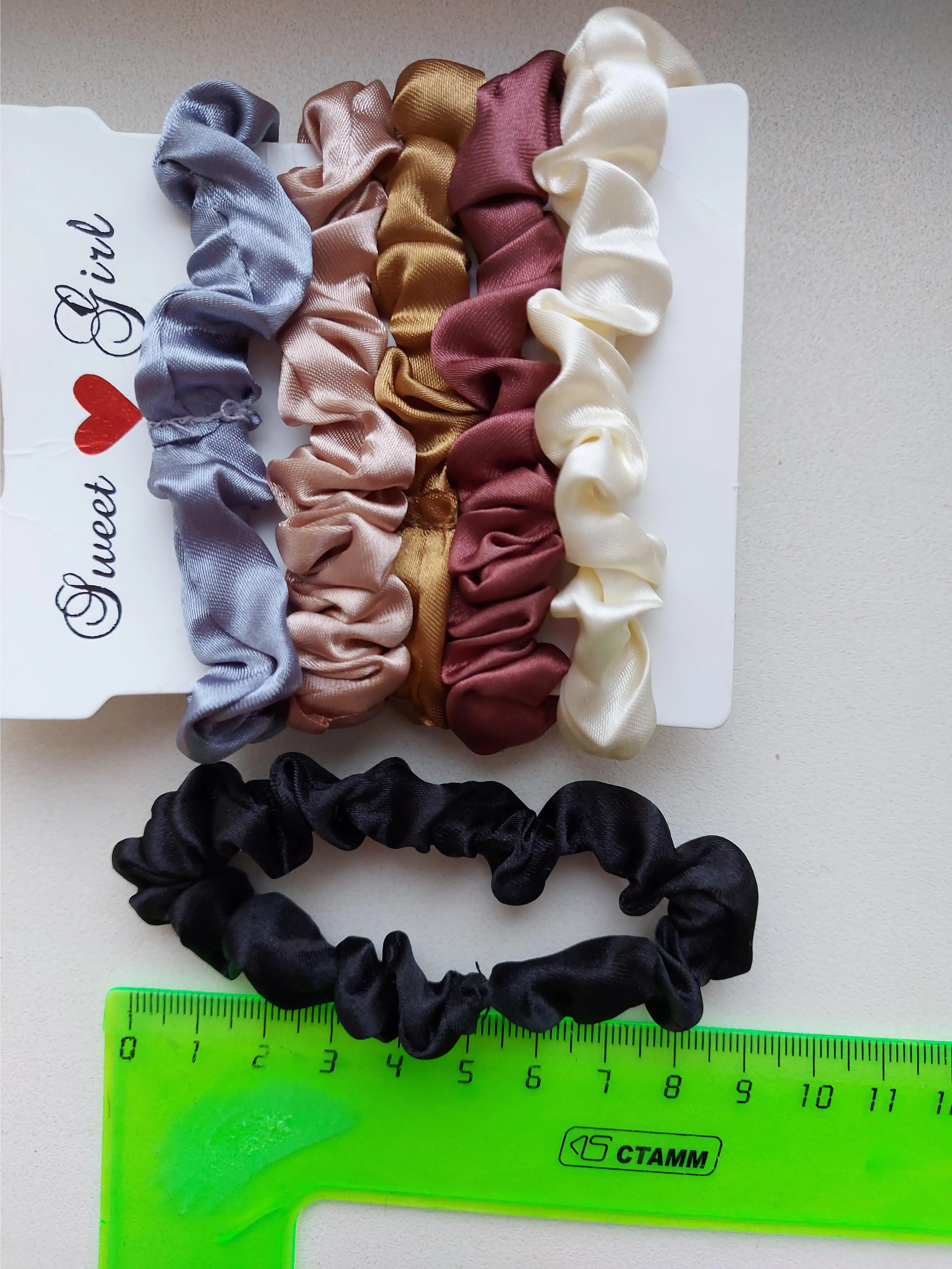 Это красивый набор атласных галстуков для волос. Очень мягкий и легко носить. Они, кажется, хорошего качества. Он был отправлен вовремя и хорошо упакован.