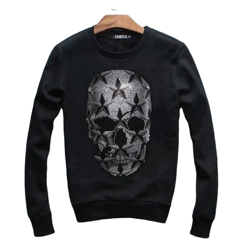 Стразы, мужские толстовки, уличная одежда, теплый мужской свитер с ...