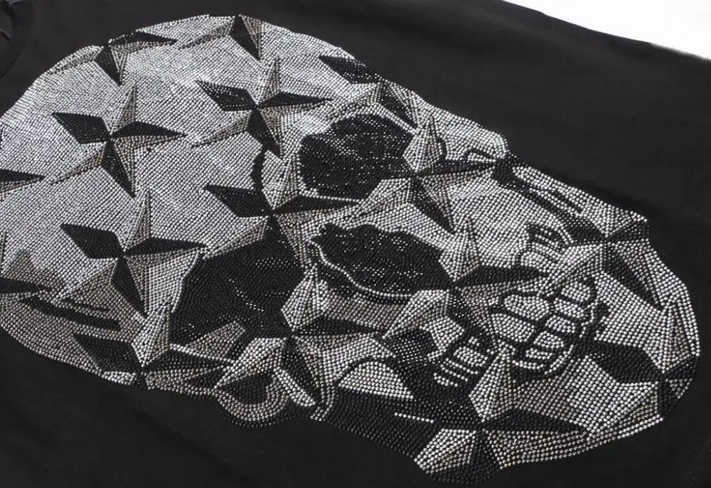 Черный цвет цветок и череп крутые Женские топы со стразами камни вы...