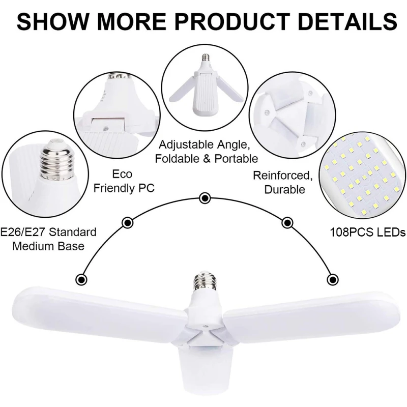 -Супер яркий светодиодный светильник для гаража s: 30 Вт Светодиодный светильник для гаража приносит вам ультра яркий 3000LM. С 3 ультра-яркая подсветка с регулируемый светодиодный головки для вашего удобства, чтобы отрегулировать угол светильник ориентироваться в зоне вы работаете. Яркий дневной свет для вашего гаража и kicthen, обеспечивая лучший опыт внутреннего освещения.